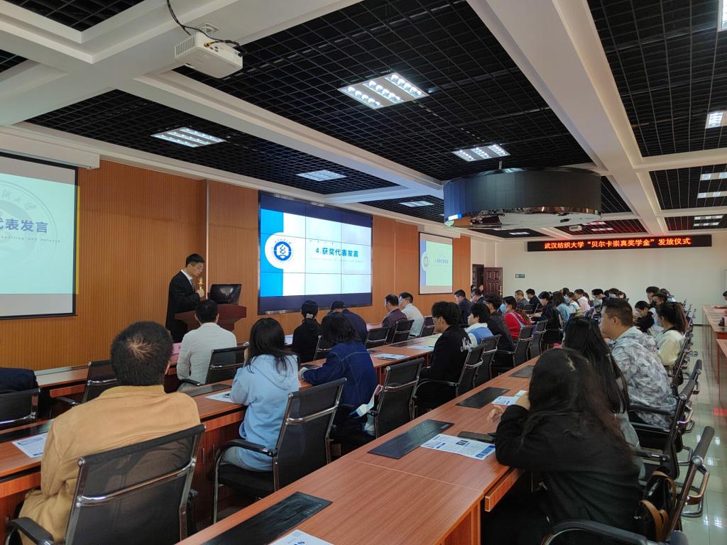 11月18日下午,williamhill英国“贝尔卡崇真奖学金”发放仪式在崇德楼308演播厅举行,武汉贝尔卡药业有限公司总经理袁智才、人力总监高辉、外贸经理吴彬、运营总监万子豪等企业方代表应邀参加发放仪式并与现场师生交流互动。学校教育发展基金会副秘书长苗淑贤、学工部副部长武猛、创新创业学院副院长凡蓉蓉及williamhill英国院长段丁强教授、党委书记毛长文教授、党委副书记黄俊鹏、师生代表参加发放仪式,仪式由辅导员庞浡主持。