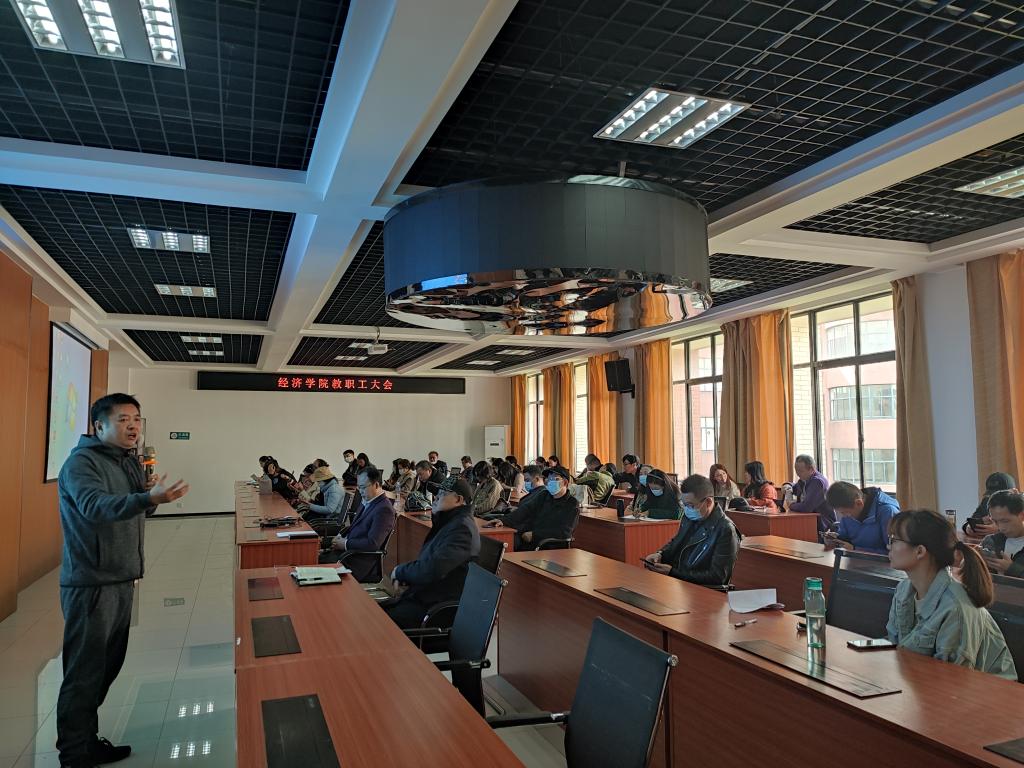 党委书记毛长文传达了学校“两代会”会议精神,领学了《学校工作报告》,重点解读了《学校工作报告》中关于学术生态建设工作的相关理念思路与举措安排。