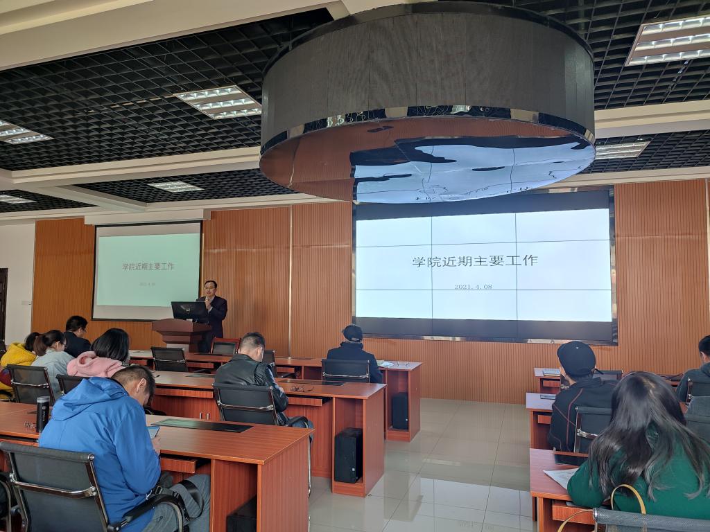 院长段丁强就学院近期主要工作进行安排部署,通报了学院学科(科研)团队、专业教学团队建设情况及课题、课程、奖项等申报情况,就学院学科专业建设经费支持及使用作了说明,重点解读了学院2021年春季学期学术活动计划,并就学院学术生态建设工作作出强调部署。他指出,2021年是学校“学术生态建设年”,学院各项工作要围绕学校主题,聚焦学术科研建设这一主线,重实质讲实效。各团队要对标学院学术活动计划,分工负责、认真组织开展相关活动,全体教职工要积极参与、深度参与,通过教研活动、科研活动、学生创新活动切实增强意识、提升能力、收获成果,学院也将通过修订相关制度办法来为学院学术生态建设提供支持保障。