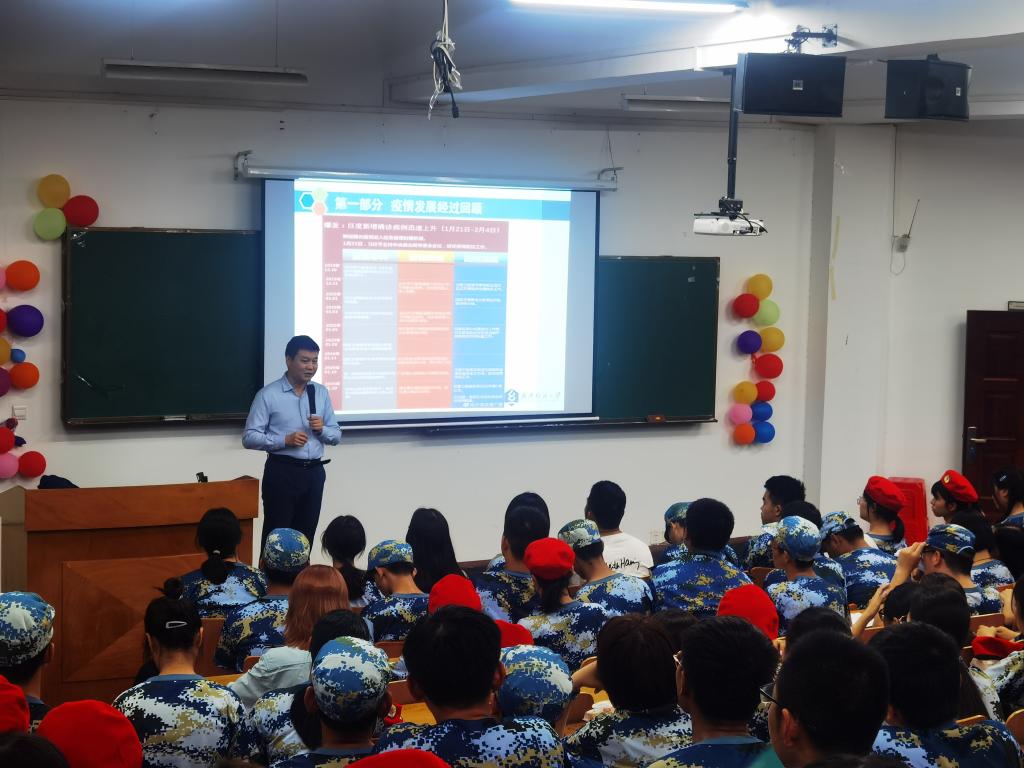 williamhill英国抗疫先进个人石子伟老师以责任与行动为主题,向全体新生宣讲了自己在抗疫过程中的经历与感悟,并激励同学们要勇于实践,承担青年团员责任。