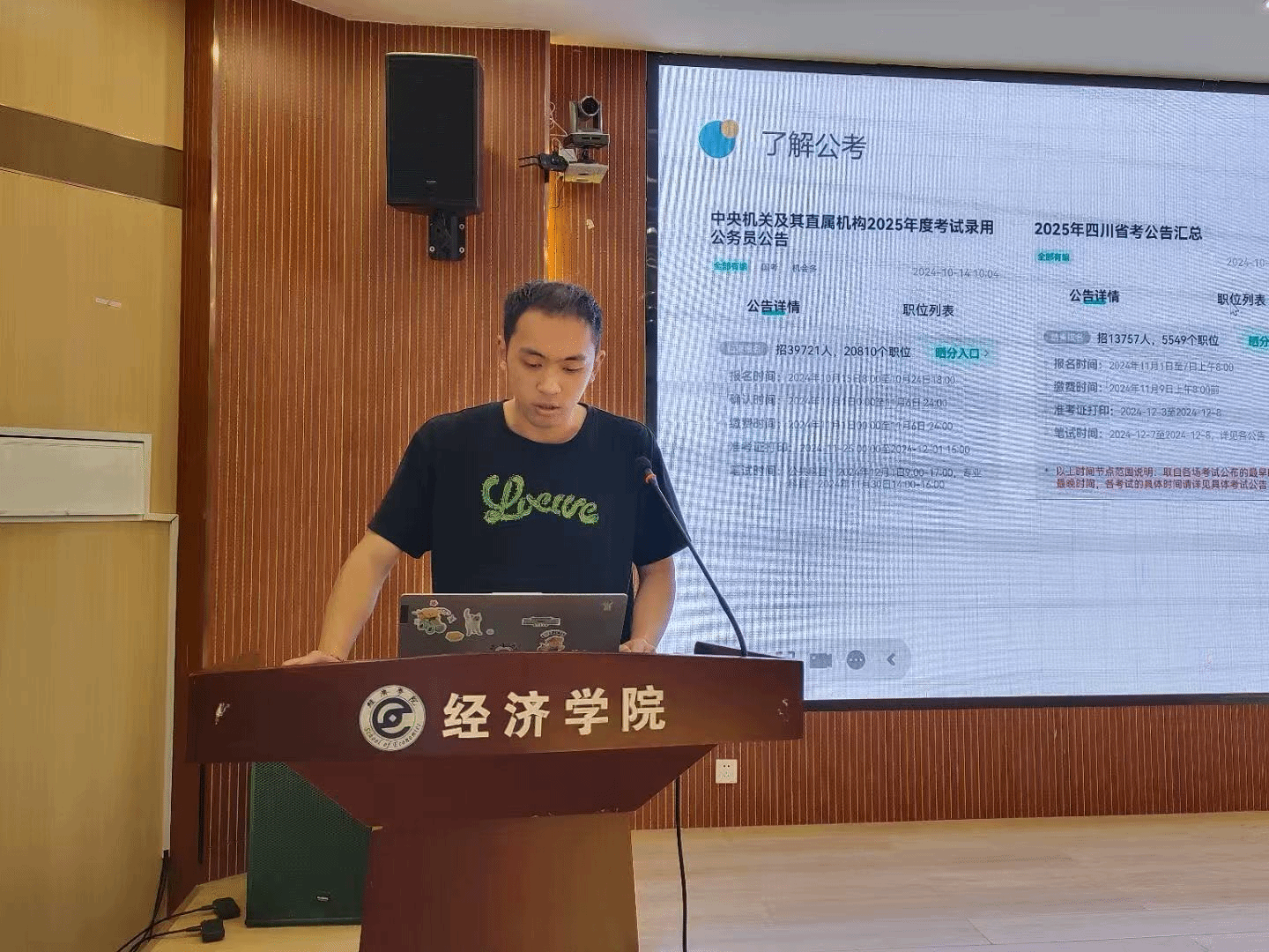 万祥(考取四川省选调生)、于文浩(考取中国人民银行)、胡逸鸣(入职中国农业发展银行湖北省分行)三位同学结合自身备考、求职经历,详细拆解了公务员考试和求职就业流程,梳理了就业收集渠道、简历制作要点及岗位匹配策略等,并就个人就业中遇到的困惑、问题分享了解决办法与经验体会。辅导员凌杰结合数据和案例,分析了学院近三年研究生就业去向,并就研究生具体可供选择的就业方向进行了针对性讲解。