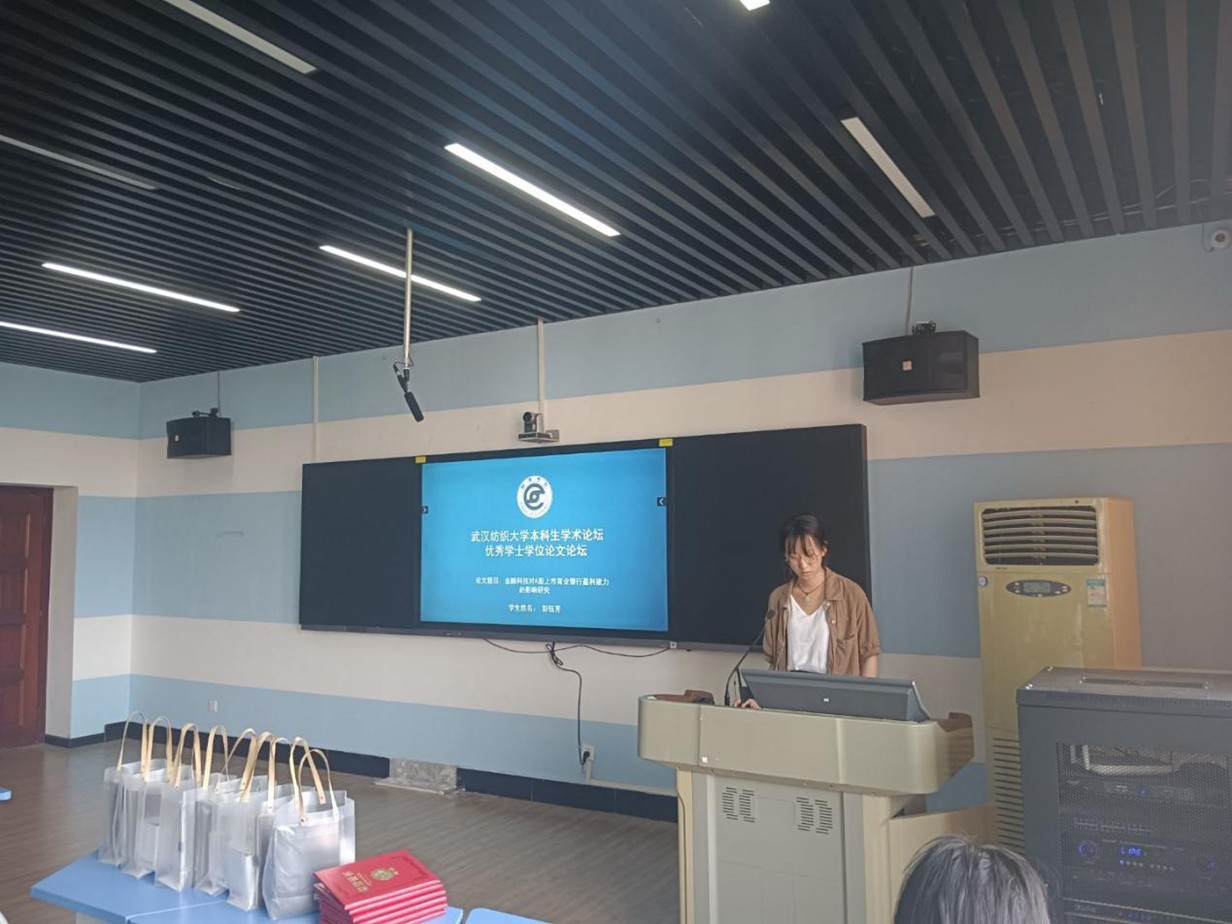 活动伊始,周靖致辞,他强调学术探索对学科发展与个人成长的重要性,希望同学们勇于突破、积极交流,在经济学领域深耕细作,用青春智慧回应时代课题。随后,六位优秀毕业生代表依次汇报,就金融科技、投资者关注、企业金融化、绿色金融、数字经济与文化产品出口等前沿议题,分享各自研究成果。从金融科技对上市商业银行盈利能力的影响,到数字经济助力文化产品出口的路径探索,他们以扎实的理论分析和实证研究,展现出对专业知识的深入理解与学术探索的热情。汇报结束后,评委老师对大家给予充分肯定,并展开专业点评。石小霞围绕本科生论文质量提升,从数据获取、逻辑构建等方面提供建议,启发同学们结合新时代学术研究趋势,善用技术工具,拓宽研究视角。论坛尾声,刘欢为荣获2025年优秀学士学位论文的学生颁发奖状与礼品,鼓励大家持续投身学术探索,在科研道路上始终保持严谨务实的态度。