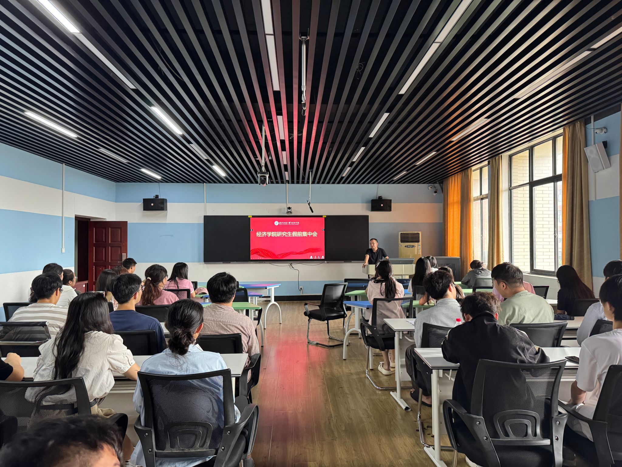 为切实提升研究生安全防范意识,为研究生创造一个安全、和谐的学习生活环境,助力他们度过一个平安、充实且有意义的假期,6月24日下午,学院在305智慧教室召开研究生假前集中会,会议由研究生辅导员主持,全体在校研究生参加会议。