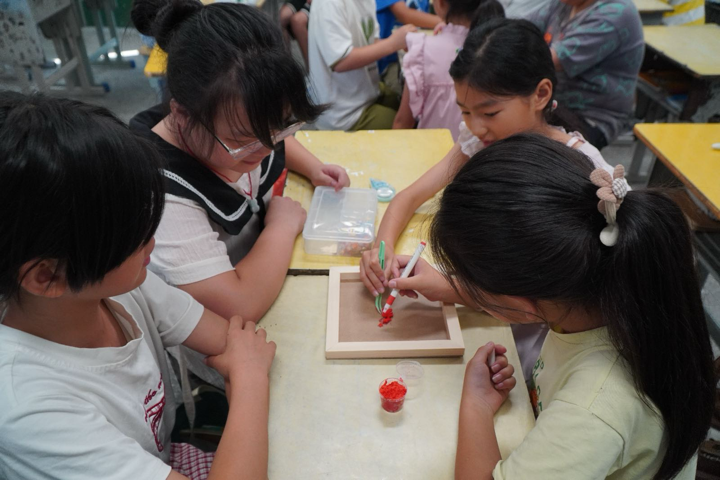 金海希望小学的手工环节点燃学生热情。在服务队成员赵筱彤和杨嘉琪的指导下,孩子们用彩纸折出火箭模型,用画笔描绘卫星升空的场景,甚至有学生别出心裁地用废旧纸盒搭建“实验基地”。一位五年级的小朋友举着自己制作的“东方红一号”模型说:“原来卫星上的《东方红》乐曲是这样传到地球的,我长大想当航天工程师!”动手实践让“两弹一星”精神转化为少年可感知的奋斗力量。