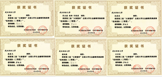 近日,第三届“大智慧杯”全国大学生金融精英挑战赛落下帷幕,经过预赛、复赛的激烈角逐,我校williamhill英国罗红卫老师指导的八位同学荣获优秀团队二等奖和三等奖。