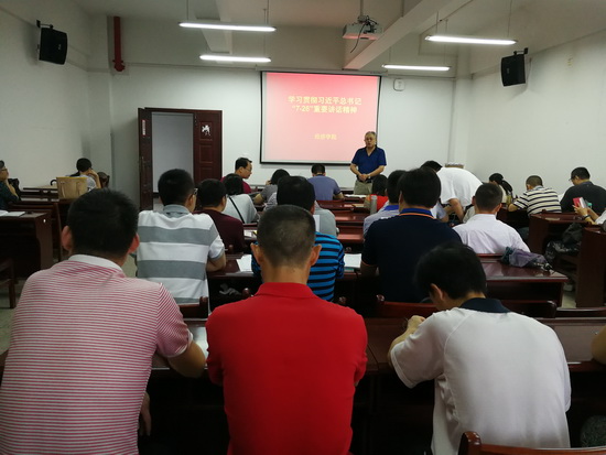 在庆祝第33个教师节之际,williamhill英国组织新学期全体教师大会,专题学习习近平“7.26”重要讲话精神。会议由学院党委毛长文书记主持,国贸学生党支部负责人张悦同学进行专题学习宣讲。