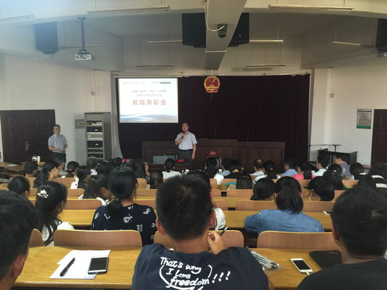 颁奖后,获奖学生史娟分享了自己的学习经验和备战经历,为下一届学生打气加油,14级学生代表王瑶瑶用“心无旁骛,勤奋钻研”的八字口号号召大家刻苦学习,一起奋斗。