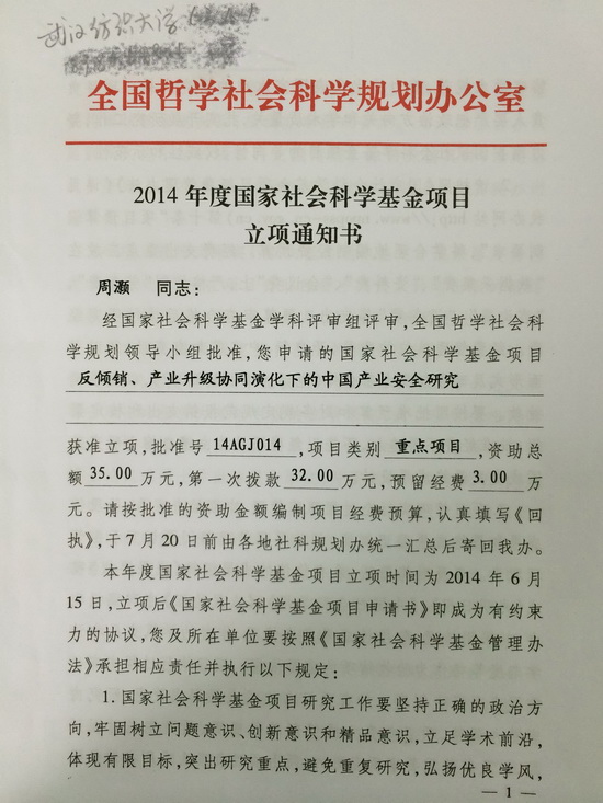 (我院周灏博士获国家社科基金立项)