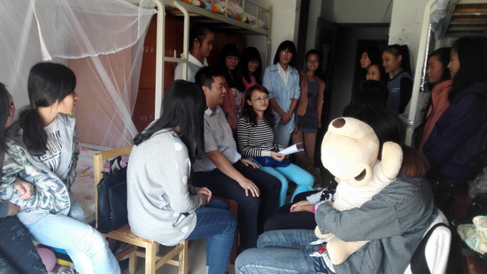 23日上午,2A409女生寝室中不断传来老师与同学们的欢声笑语,教师党员李正旺老师在新生辅导员张颖的陪同下,深入学生宿舍和学生亲切交流,现场气氛十分融洽。交谈中,明丽丽同学说道:“在课堂上有问题,我只能利用课间短暂的十分钟问老师,现在老师到寝室来,我可以和老师畅所欲言,一起探讨不懂的地方。”由于走访的都是新生宿舍,老师们比较关心同学们是否适应大学新环境及对大学如何规划,竭尽心思为同学们提出指导意见。同学们对老师的到来,很是感动,李嘉琪表示:“老师和平日上课真不一样。课堂上觉得老师很严格,而现在老师好随和,我们和老师一起谈学习、谈理想、谈社会,这样的感觉真好。”直到11点钟,老师们才离开学生寝室。