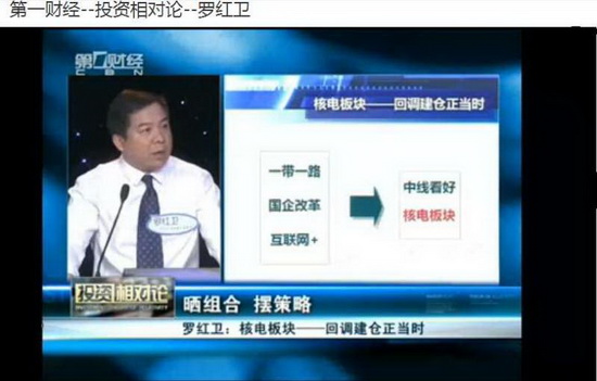 5月8日,上海“第一财经”频道播出了有我院罗红卫老师参与的《投资相对论》节目,罗老师在节目中发表了个人中线投资思路。基于核电板块符合国家“一带一路”政策,符合国企改革等政策导向,符合价值投资理念,加上其对大盘和核电板块指数走势的技术分析,认为在大盘回调整理过程中,投资者应把握核电板块个股的投资机会。