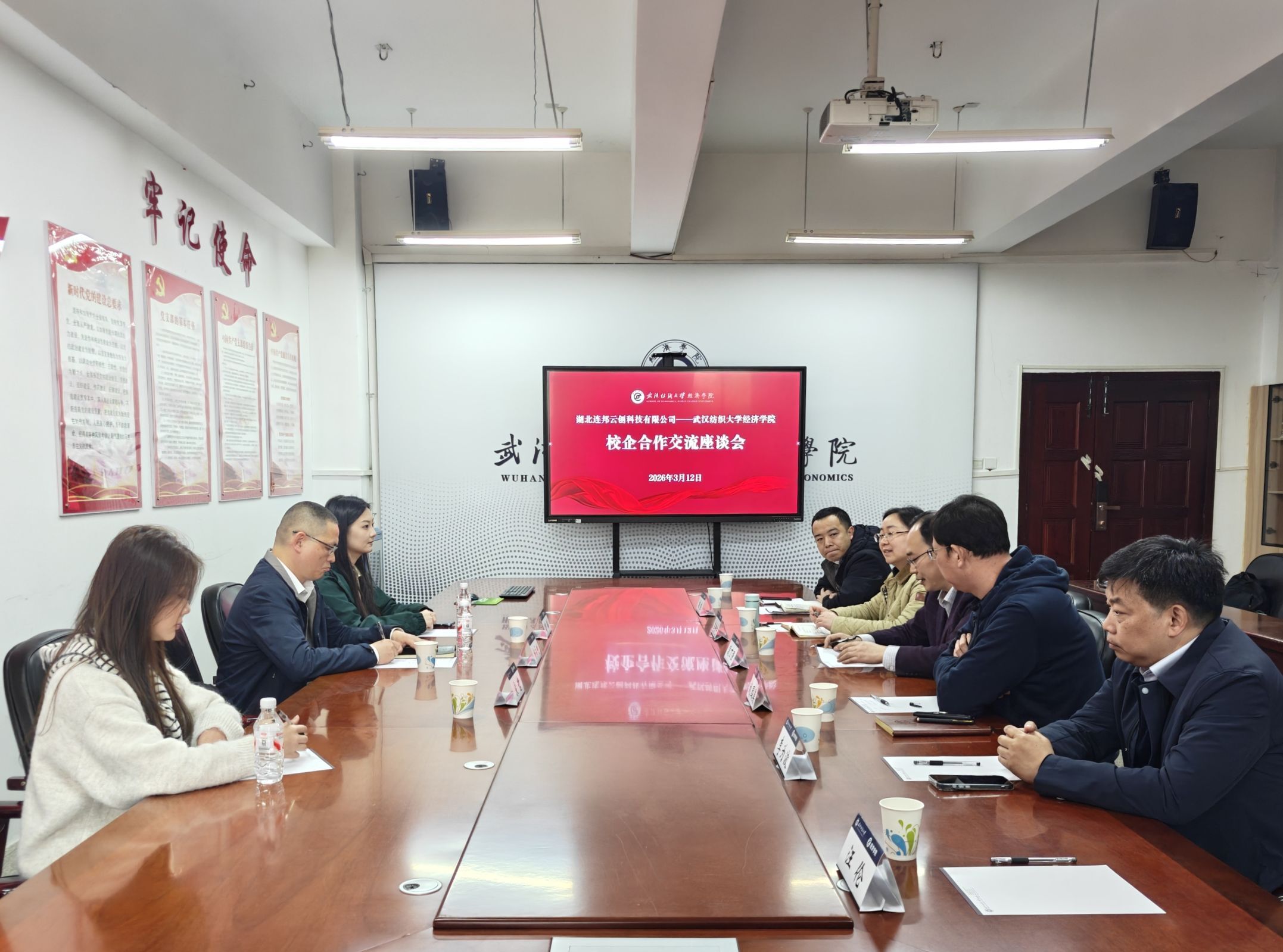 为深化产教融合、搭建协同育人平台,推动人才培养与产业需求精准对接,3月12日下午,学院与湖北连邦云创科技有限公司在崇德楼315会议室举行合作洽谈会,湖北连邦总经理杨永刚和企业HR一行应邀出席,学院院长段丁强、党委书记刘园美、党委副书记李静宇和学院实验室、学工办相关人员出席会议。