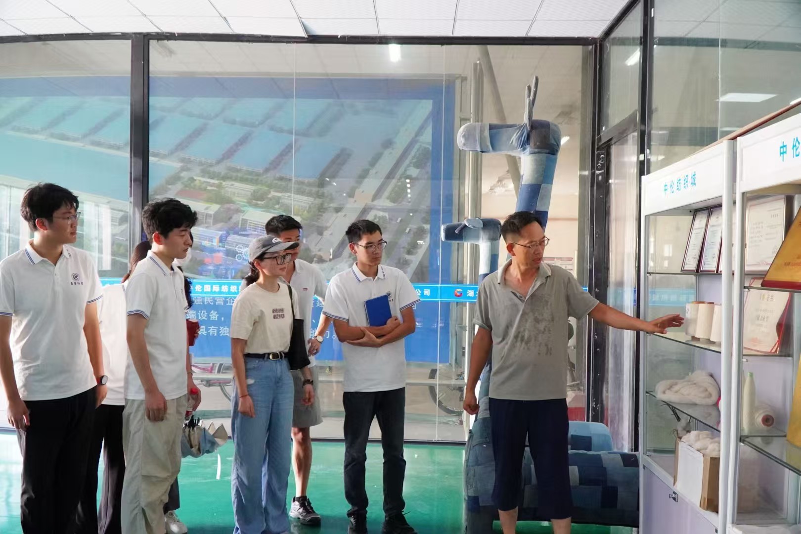 王文佳博士(左三)带领学生在潜江中伦纺织城调研