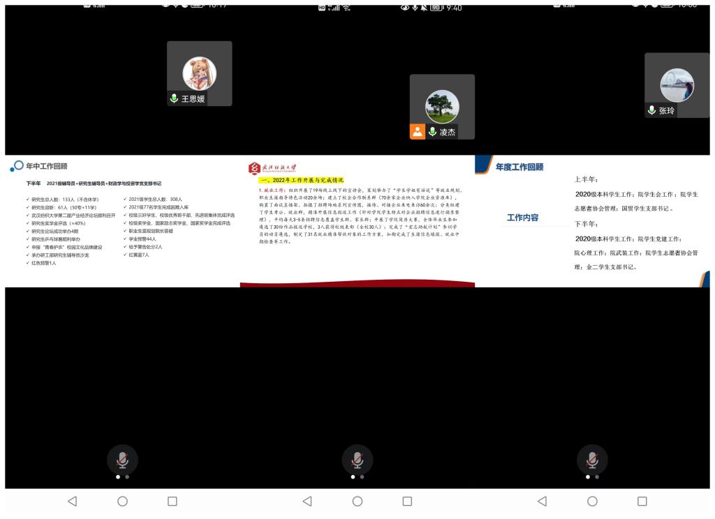 1月9日上午,学院学生工作总结述职暨转段发展研讨会通过腾讯会议线上平台进行,会议回顾总结了学院2022年度学生工作,谋划部署了下一阶段工作目标与发展任务。学院党委副书记李静宇、全体辅导员参加会议,会议由学院学工办主任凌杰主持。