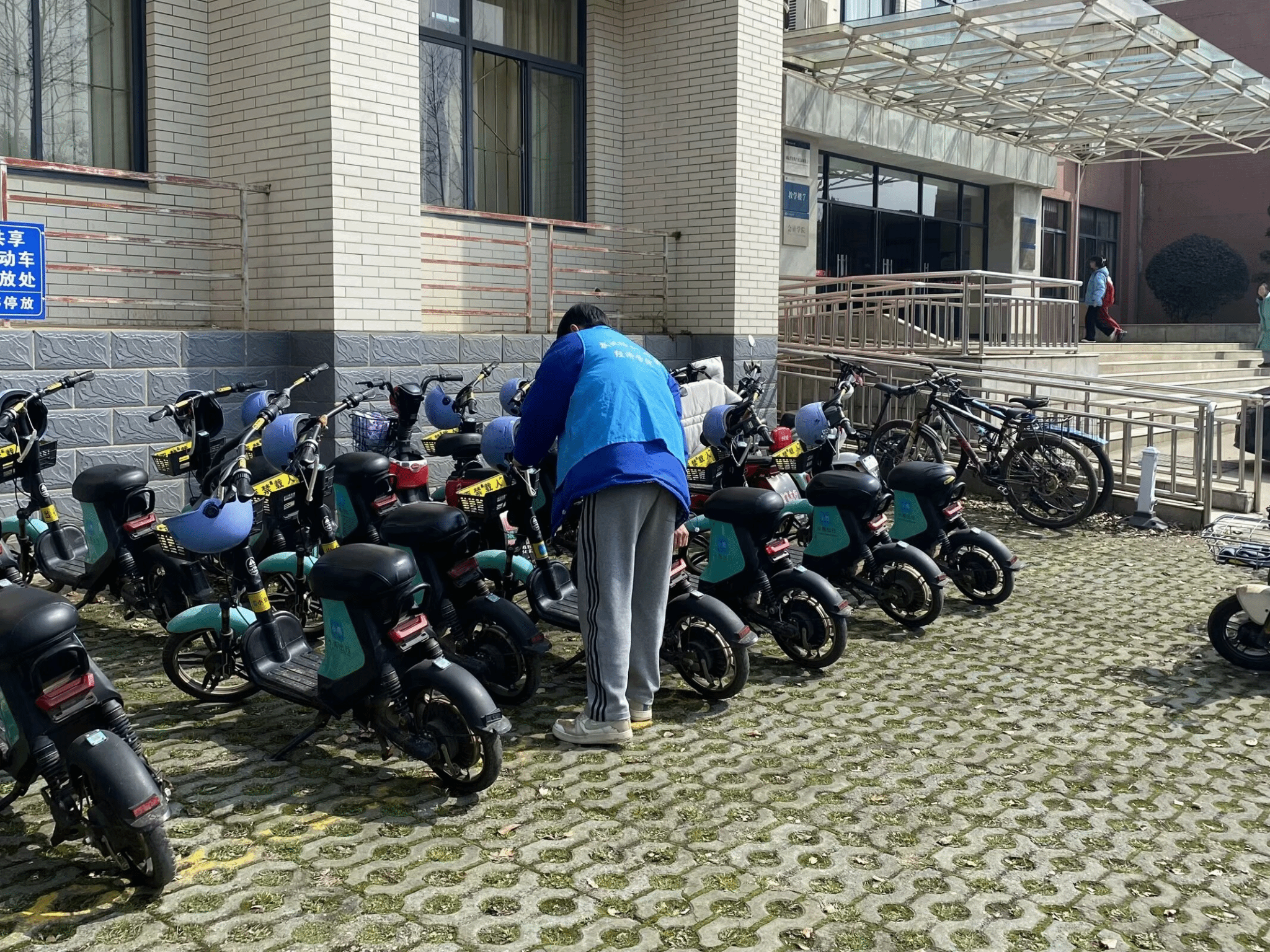 鉴于崇德楼前电动车数量众多,过去随意摆放、杂乱无序的现象屡见不鲜,这不仅影响了学生的日常出行安全,也对校园环境造成了不良影响。为此,学院特别招募了一批电动车停放引导员,旨在通过他们的引导与帮助,让电动车停放秩序焕然一新。
