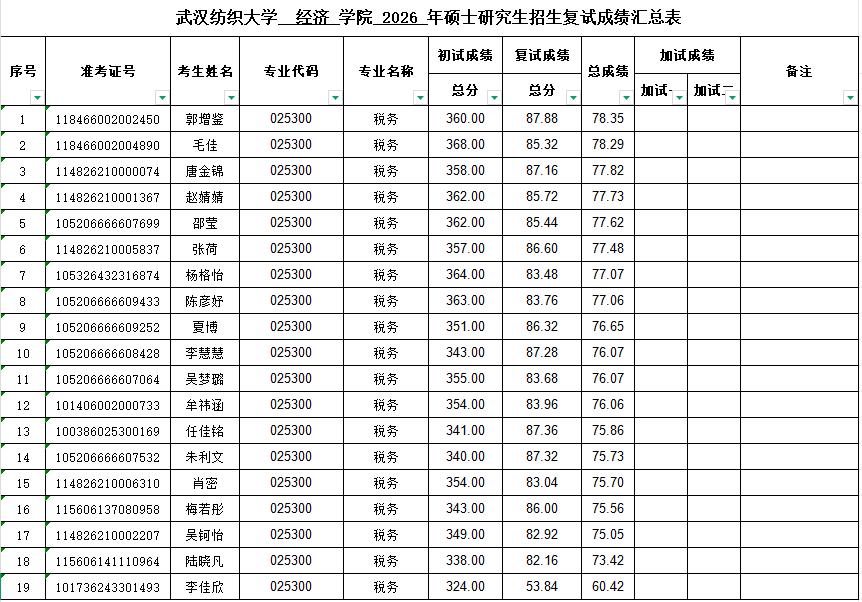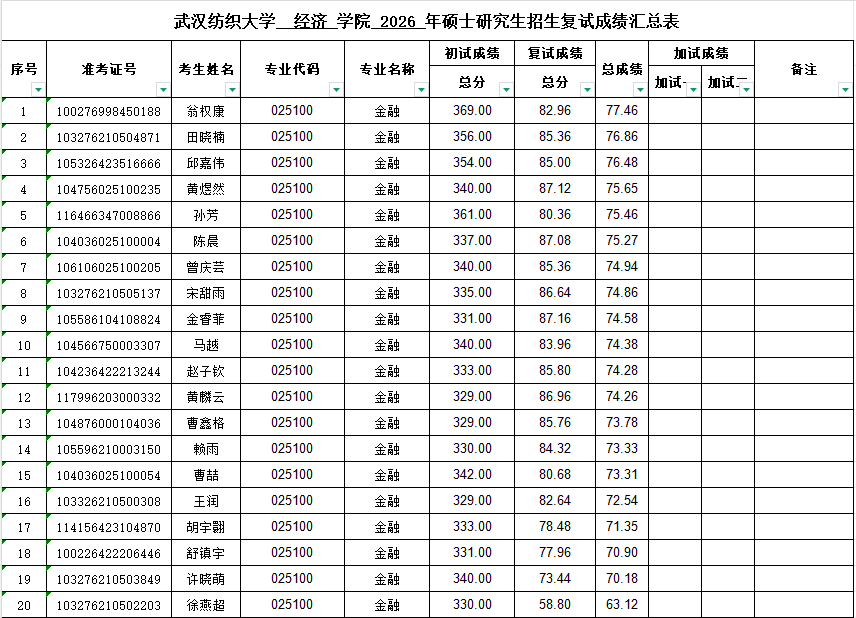 根据教育部《2026年全国硕士研究生招生工作管理规定》(教学函〔2025〕2号)、William威廉英国研究生院《William威廉英国2026年招收攻读硕士学位研究生复试录取办法》等文件精神,我院于2026年4月11-12日规范组织开展了2026年硕士研究生复试工作。经专业课笔试、外语能力测试、综合素质面试等环节,已全部完成2026年我院研究生招生复试(调剂)工作,复试成绩已报学校审核,现公示如下: