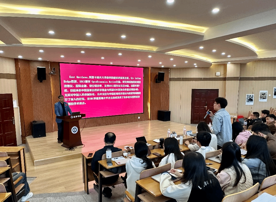 在互动环节,研究生代表积极提问,Kent Matthews教授耐心解答疑问并展开讲解。整场讲座氛围热烈又庄重,我院师生纷纷表示本次讲座让他们受益匪浅,对我国银行业领域有了更加深入地了解和认识。