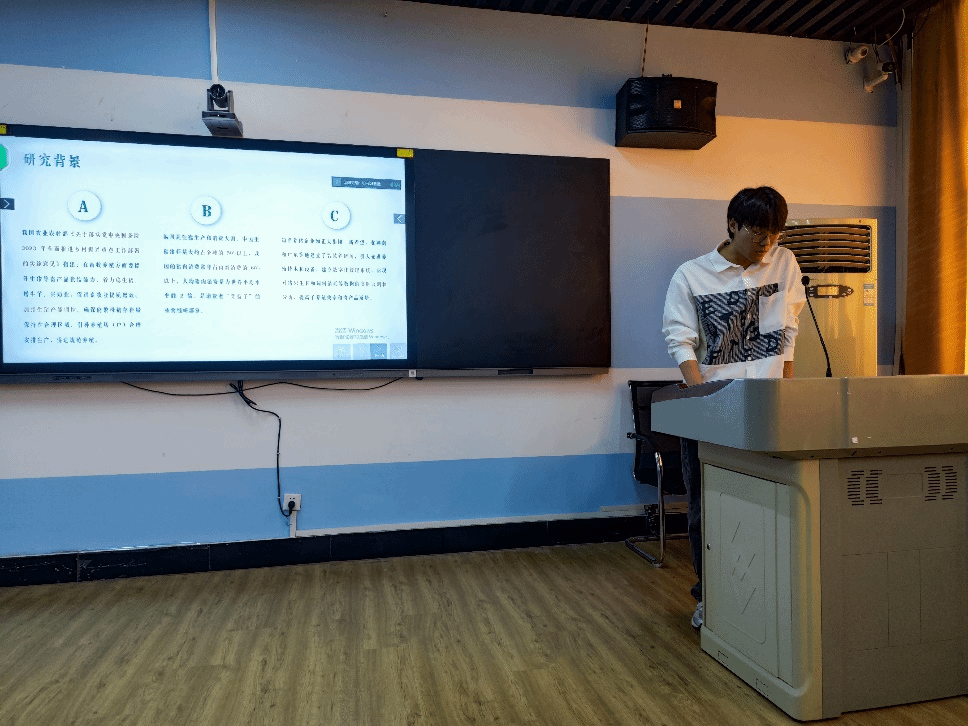 论坛上,六名主讲人分别从研究背景、研究思路以及研究结论等方面分享他们最近的学术研究成果。文曼丽同学基于绿色发展的背景,提出数字基础设施对碳排放强度的影响研究;李明月同学基于家庭决策的视角,同时从老龄化和少子化两个人口特征分析家庭人口结构变化对于家庭风险金融资产配置的影响;郑靓琼从长江中游城市群各地市级数据出发,研究金融集聚对绿色经济效率的影响;尚宏金同学分享了团队的参赛作品,提出关于武汉市居民对云养猪认知程度和购买意愿调查研究;谭伟燊同学以广东省企业为例,进一步探讨科技金融投入对科技型企业财务绩效影响;熊佳同学利用面板分位数回归模型,讨论绿色金融对分阶段清洁能源发展边际效应的演化特征。每位同学将自己的研究方法和研究成果从各自不同的角度进行阐述,数据详实,内容完整,循序渐进,深入浅出,充分展现出我院研究生的学术实力和科研水平。