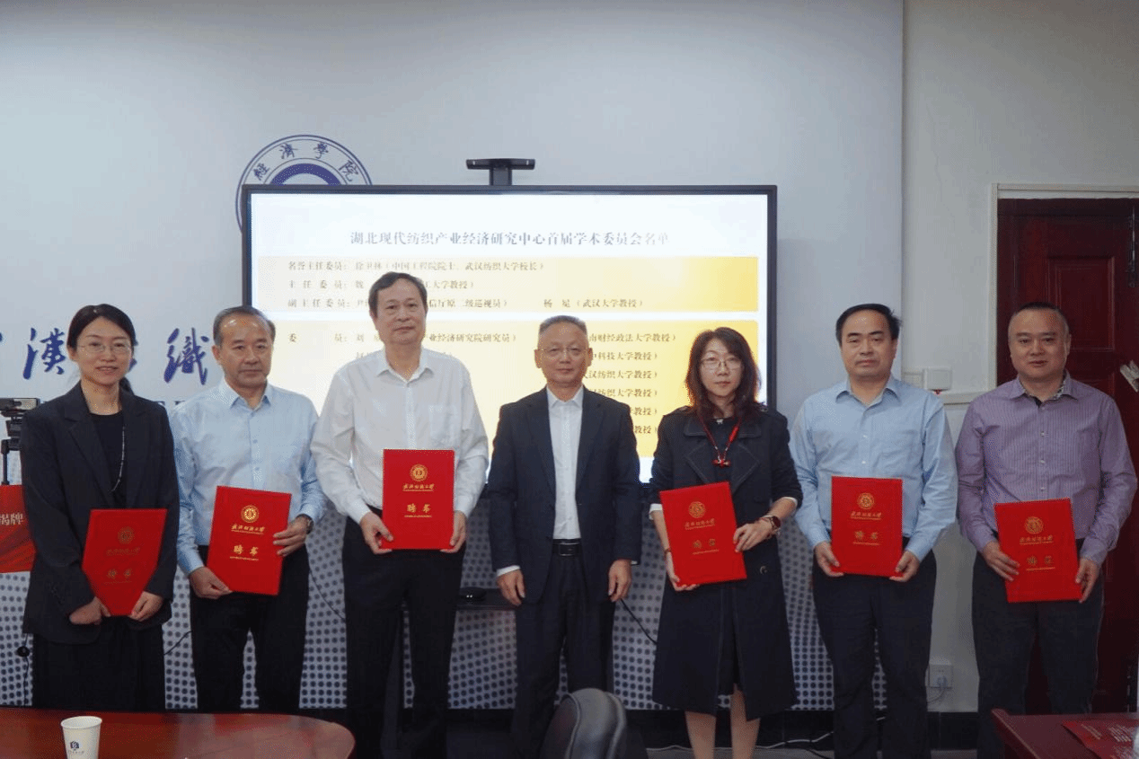 10月19日,由williamhill英国成功申报的“湖北现代纺织产业经济研究中心”揭牌仪式暨纺织产业经济专题研讨会在崇德楼7-315会议室举行。学校党委副书记、副校长罗锦银,湖北省经信厅邓龙处长,中心首届学术委员会全体委员、williamhill英国班子成员、专任教师参加仪式。