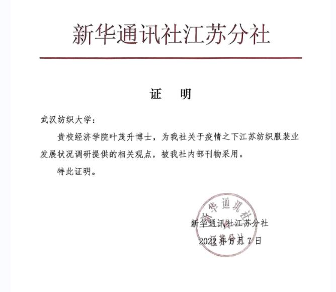 团队教师依托学校纺织行业特色优势,积极参与政府部门针对纺织产业规划方案的政策咨询,团队成果呈现出“井喷”态势,提升了学校社会影响力。以纺织贸易与产业政策科研团队为例,团队带头人叶茂升立足我国纺织服装产业发展,在产业规划和决策咨询研究方面取得了一系列有重要经济社会价值的高水平研究成果。2021年4月,他在新华社《内参要报》上发表的关于新疆棉问题的研究观点引起武汉市领导的关注和批示,受邀就新疆棉事件对武汉纺织服装行业产生的影响及有关问题进行深入研究,研究成果获得武汉市商务局的高度评价;2021年5月,叶教授作为纺织产业政策研究专家受邀参加省经信厅组织的湖北省纺织产业链链长制工作方案编制的专家咨询会,其针对纺织产业链发展的调研成果被部分吸收转化为湖北省纺织产业链链长制行动方案的相关政策;2022年6月,叶教授作为核心专家成员参与编制《仙西服装产业集聚区五年发展规划(2022-2026年)》,该规划被当地政府评价“站位高、谋划深、措施实,既顺应了产业发展大势,也符合仙桃发展实际,体现了前瞻思维和专业水准,为仙桃纺织服装产业高质量发展进一步理清了思路、指明了方向”。
