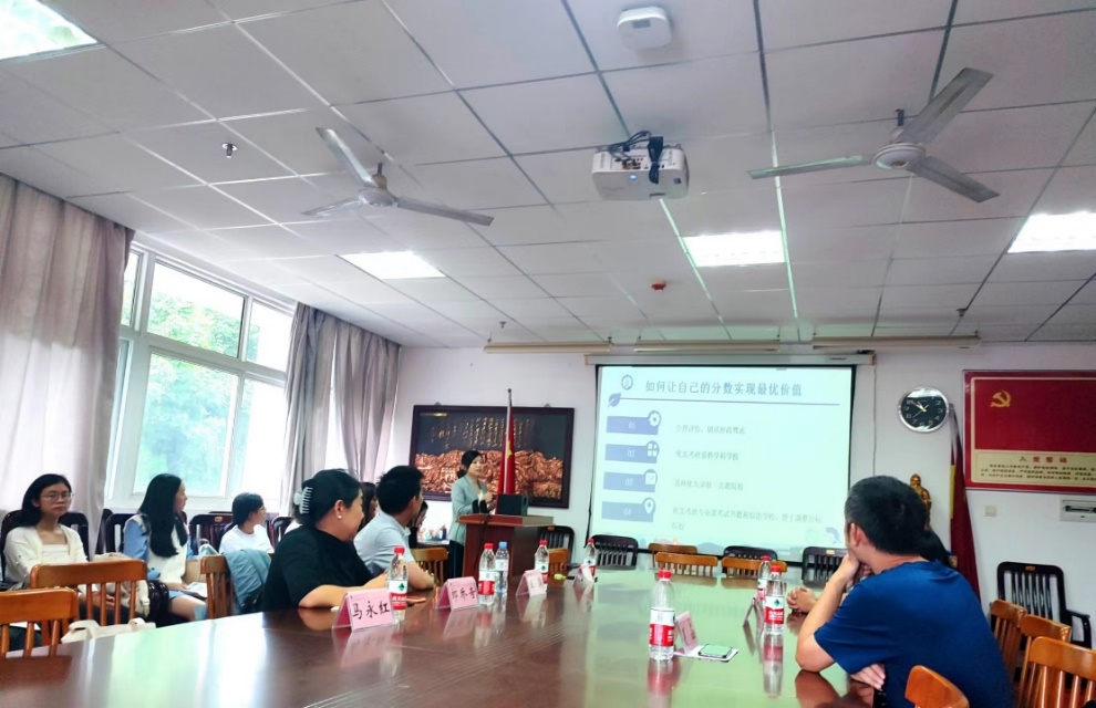 随后,本院郭雪老师给在场的学生发放了我院的招生宣传册,并从学校的招生政策、学校优势、人才培养、学院各学科专业配置、学院近年的发展、毕业生的就业去向等进行了详细的介绍。现场气氛热烈,得到了学生的积极回应。