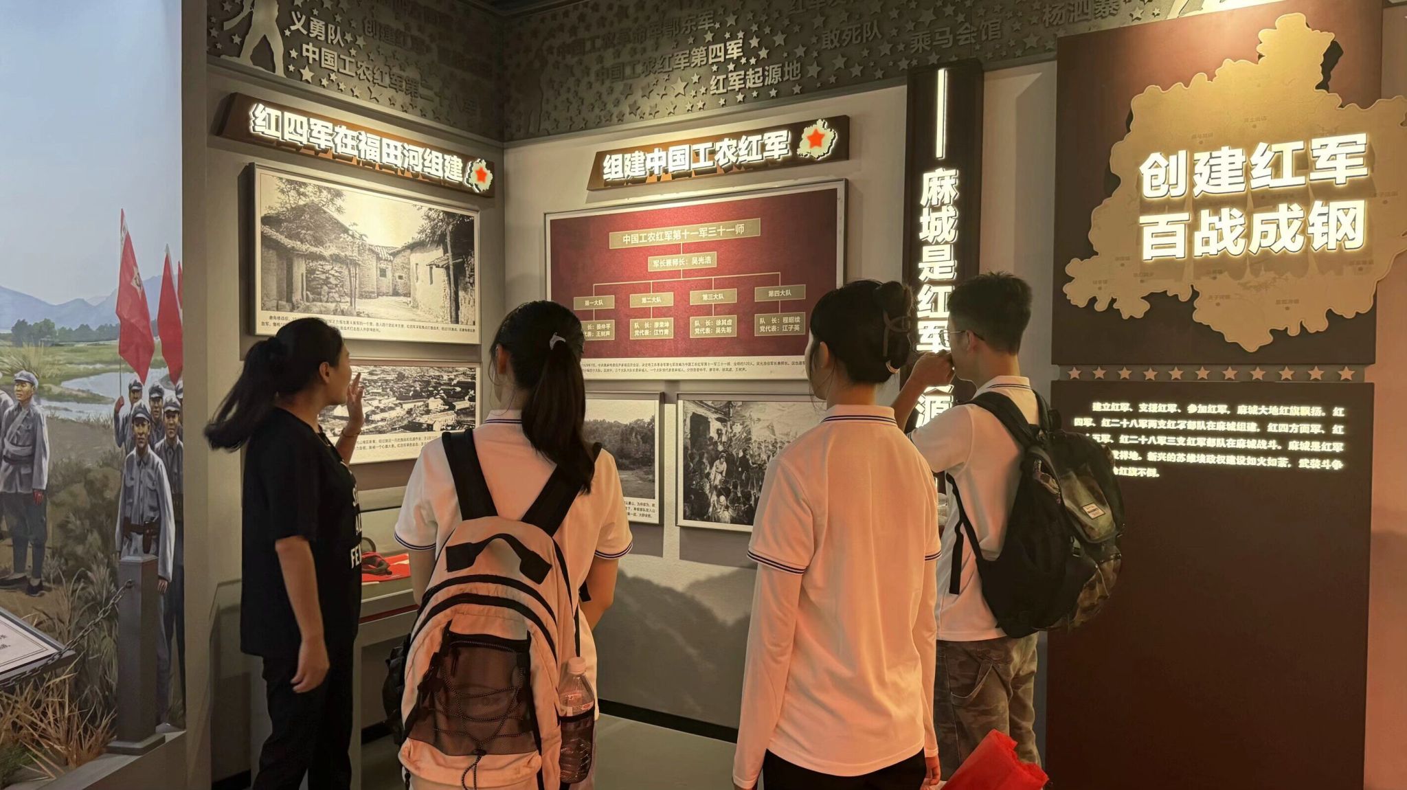 在乘马岗镇,实践团队的首站便是庄严肃穆的乘马会馆。作为黄麻起义的重要策源地,乘马会馆承载着厚重的历史记忆与革命精神。团队成员们认真聆听讲解,细致观看馆内展出的历史文物、珍贵文献及照片资料,深刻感受到了革命先辈们为追求民族独立和人民解放所付出的巨大牺牲与不懈努力。同学们表示,通过此次参观,他们对革命历史有了更加直观和深刻的认识,也更加坚定了自己为国家发展贡献力量的决心。