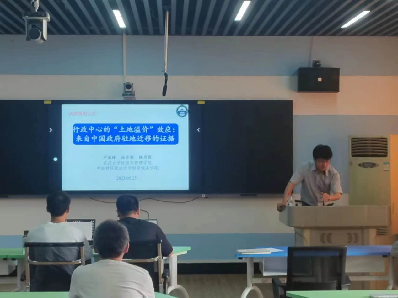本次论坛邀请了武汉大学经济与管理学院教授、博士生导师卢盛峰进行题为《行政中心的“土地溢价”效应:来自中国政府驻地迁移的证据》的学术讲座,本次讲座由保永文老师主持,学院科研骨干教师与部分研究生参加了本次讲座。