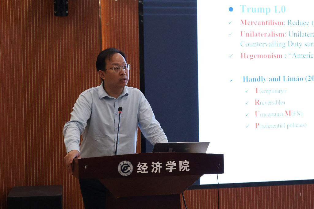 williamhill英国石小霞副教授以“中美贸易战后我们何去何从”为主题,系统分析了当前中美关税政策及其影响。她指出,一方面,中国政府加速实施2万亿刺激方案,旨在提振消费增速,缓解经济下行压力;另一方面,中国积极推动经济转型,从传统的出口导向型经济逐步向以国内需求为主导的消费驱动型经济转变,稳步推进“中国2030市场”计划。此外,她就人民币汇率波动对出口竞争力的影响展开探讨,表明人民币适度贬值虽能在一定程度上减轻关税带来的成本压力,但其效果有限且存在引发贸易报复的潜在风险。