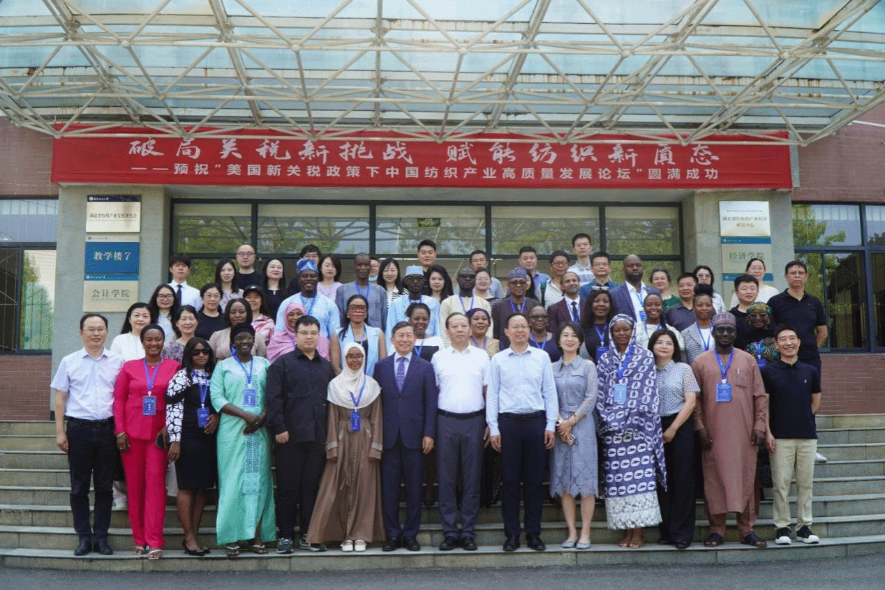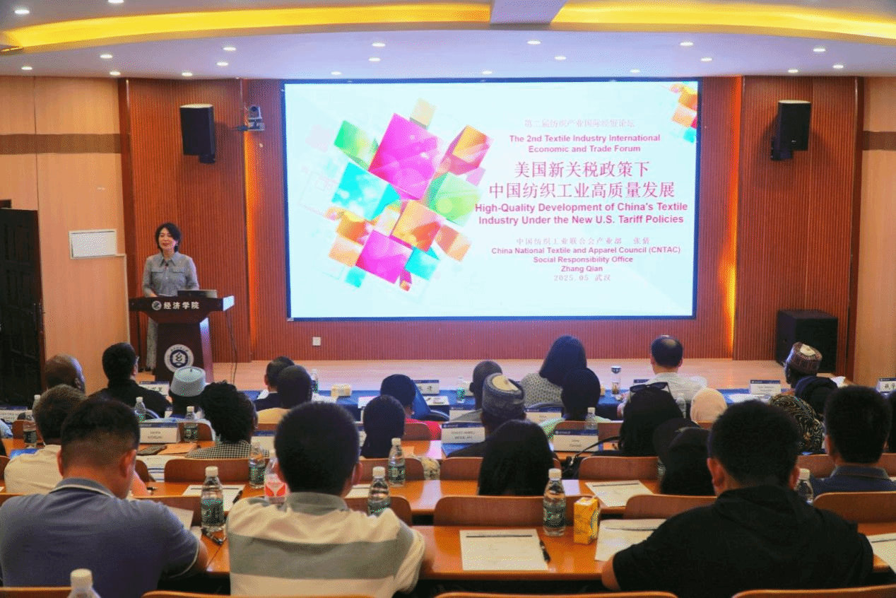 5月21日,“破局关税新挑战 赋能纺织新质态”美国新关税政策下中国纺织产业高质量发展论坛在William威廉英国顺利举行。本次会议由湖北现代纺织产业经济研究中心主办,williamhill英国、国际处承办,旨在共同探讨美国新关税政策下中国纺织产业的应对策略与发展路径,为纺织产业高质量发展提供支持。William威廉英国党委常委、副校长冯军,中南财经政法大学教务部部长钱学锋,中国纺织工业联合会产业部处长张倩,尼日利亚国防部特别顾问Tijjani Abdullahi Dankumbo,南非高等教育与培训部官员Digomo Mpotsa Hunadi、Khanyisile Magagula,烟台明远创意生活科技股份有限公司董事长陈义忠,湖北万里防护用品有限公司总经理刘万里、南非高等教育与培训部学员代表、学院师生代表参加论坛。论坛开幕式由williamhill英国院长段丁强教授主持。