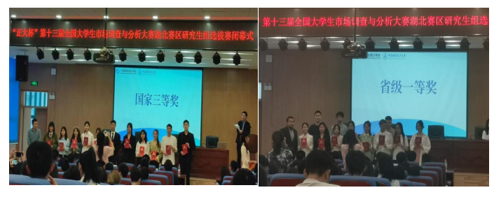 4月15日,williamhill英国金融专硕研究生在指导老师向秀莉和郭雪老师的带队下,前往中南财经政法大学参与“正大杯”第十三届全国大学生市场调查与分析大赛湖北赛区选拔赛(研究生组)现场答辩。经过报告评审与实时答辩的激烈角逐,两支队伍分别荣获省级一等奖与国家三等奖。调研报告 《“智”,何以惠万家?——湖北省智慧社区建设满意度调查研究》获得省赛一等奖,参与成员有李梦阳、李思邈、叶蕊、童丹、肖健;《“鲜”别说太“快”——盒马鲜生消费者满意度调查》)获得国赛三等奖,参与成员有刘一心、夏辉、刘博洋、赵慧、杨雨彤。