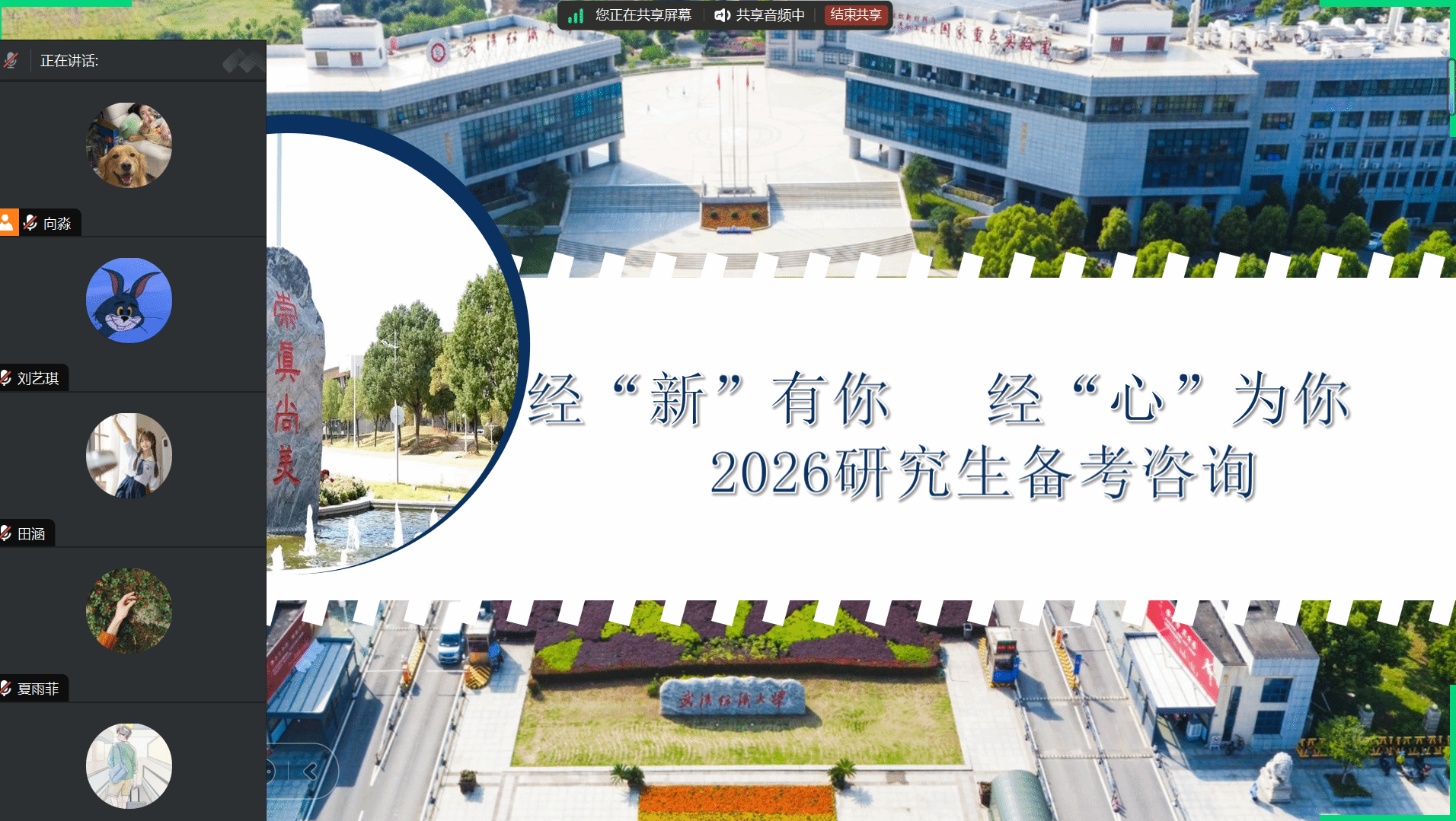 为提升研究生招生宣传的针对性与实效性,进一步优化生源质量,实现“质”“量”并举,10月16日,williamhill英国组织2024级金融专硕学生向淼,通过腾讯会议线上平台,为武汉东湖学院williamhill英国学生开展2026研究生招生专场宣讲会。