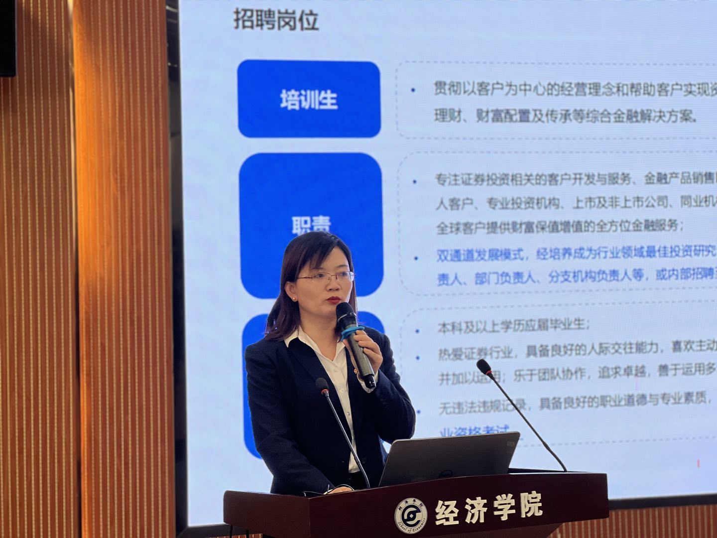 会议伊始,段丁强对嘉宾表示热烈欢迎,同时高度评价了中信证券与我校良好的合作发展关系。段丁强指出,学院对研究生的未来发展寄予殷切期盼,研究生就业问题至关重要,既要提升研究生的自身专业素养,也要为其找到一条高质量发展之路。