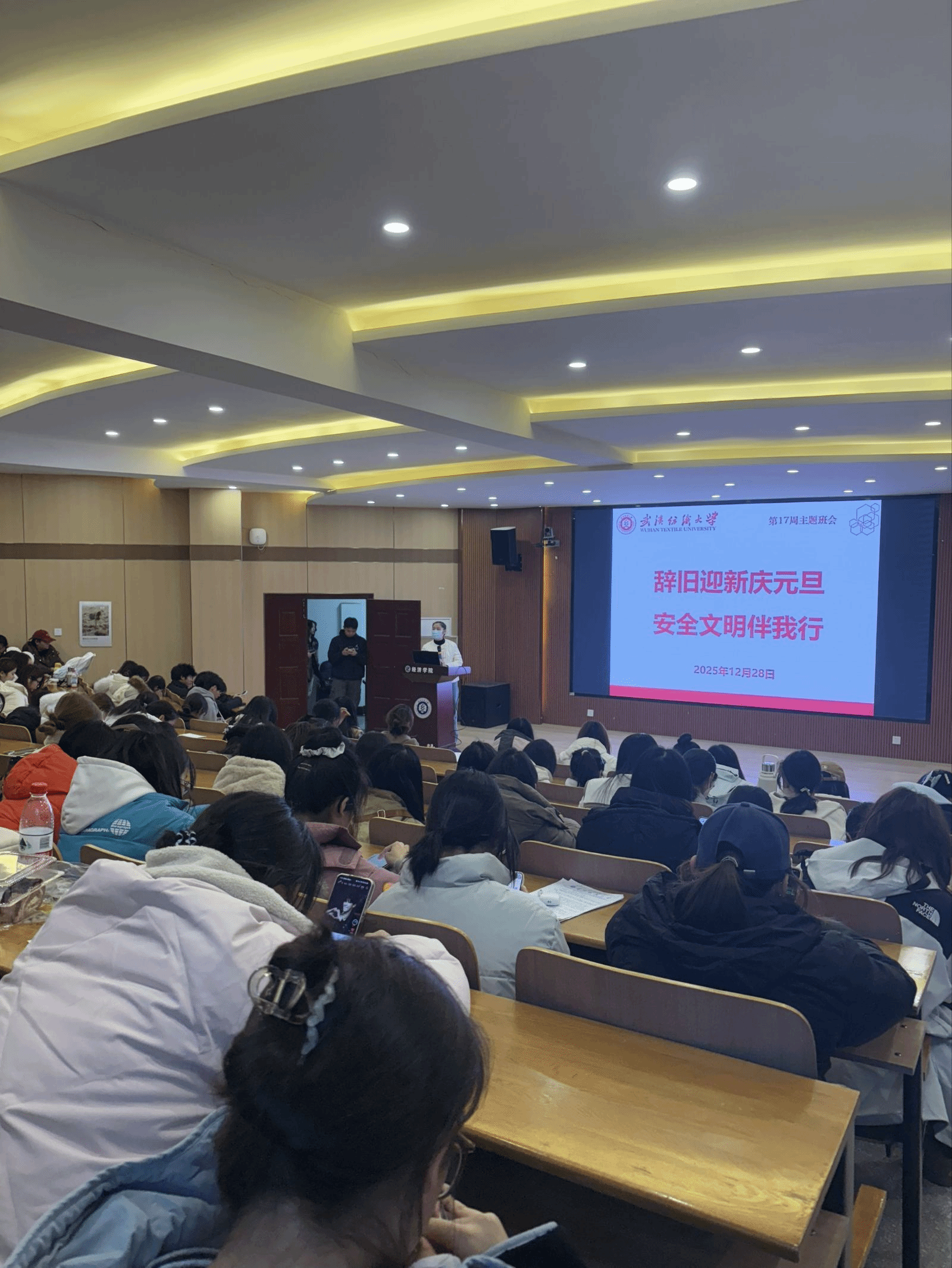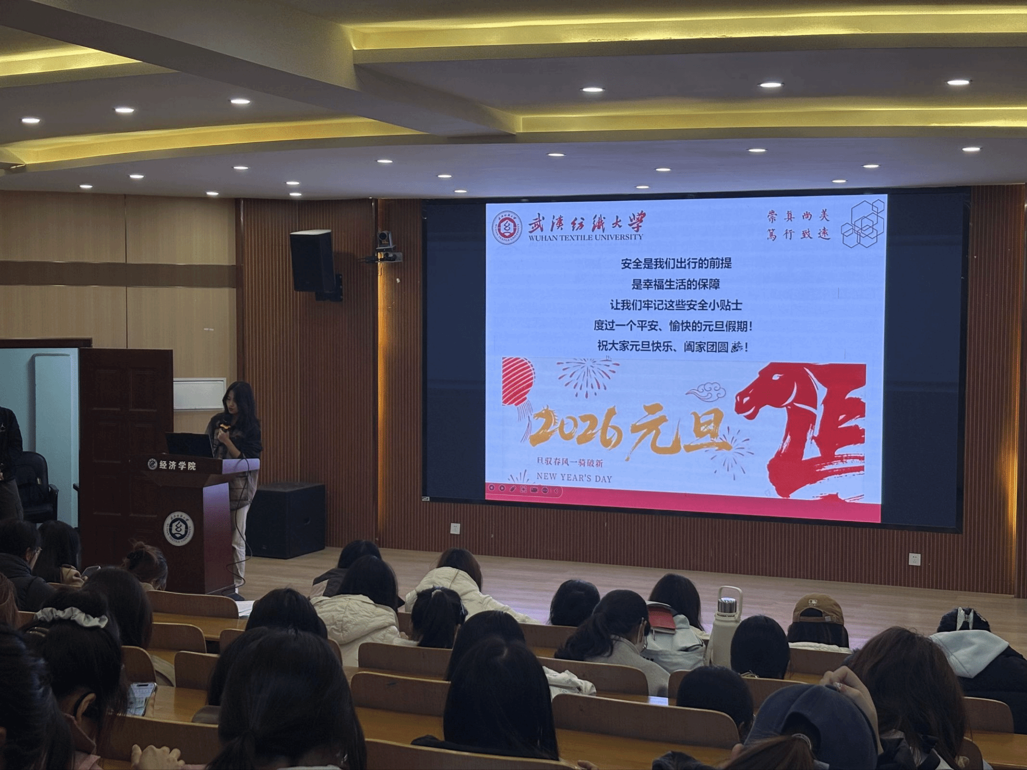 为深入贯彻中央经济工作会议精神,传承元旦传统文化,筑牢假期安全防线,12月28日,学院各年级于崇德楼开展“辞旧迎新庆元旦,安全文明伴我行”主题班会。本次班会由各年级辅导员、班主任主持。