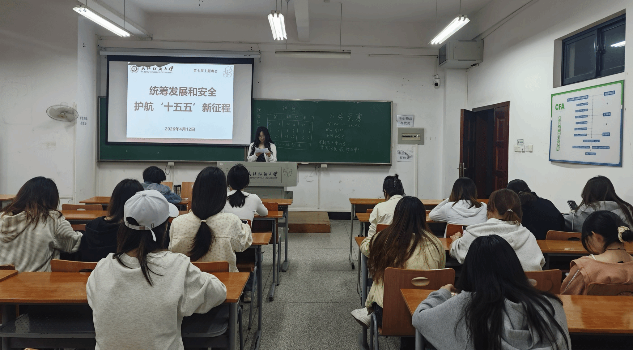 为引导学生筑牢安全思想防线,增强国家安全意识,维护校园和谐稳定,4月12日,学院于崇德楼组织开展“统筹发展和安全,护航‘十五五’新征程”主题教育班会。班会由辅导员、班主任主持,全体学生共同参与。