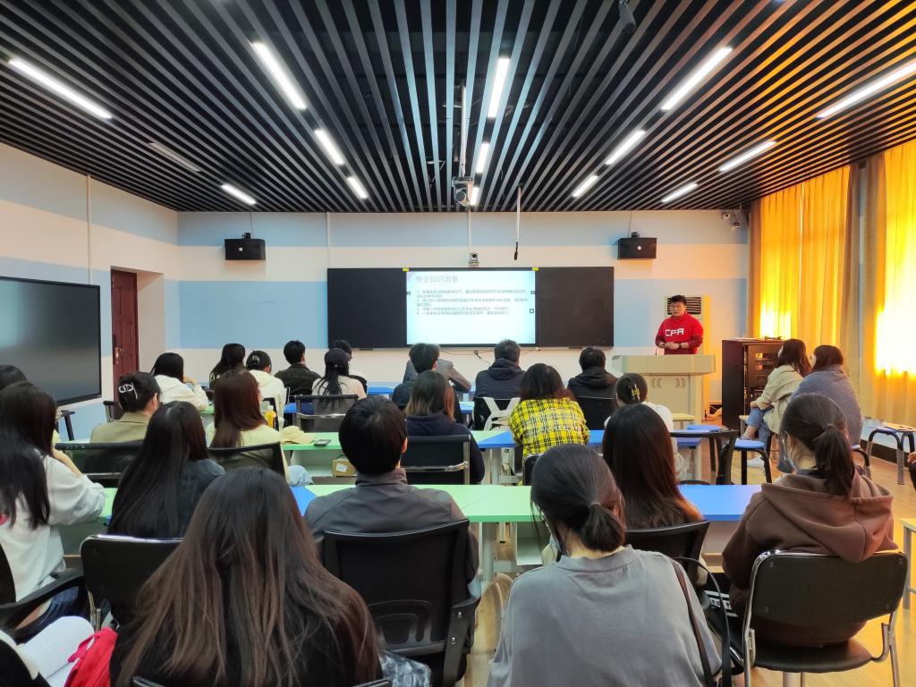 学院金融专硕负责人王涛老师进行课程专题导学,他通过对研究生阶段与本科阶段的课程分析系统讲解了研究生培养与本科生培养的差异性,详细介绍了学院研究生招生专业、政策及往年复试调剂等相关情况,并结合个人多年参加研究生复试组织工作的经验为大家参加复试提出指导性建议;学院优秀研究生代表王凯超、彭知奕分别结合个人经历分享了自身调剂经验,重点讲解了调剂流程、注意事项、备考要点等。