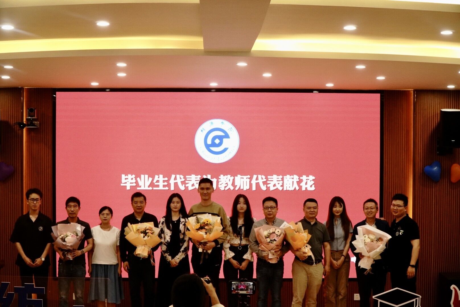 典礼在韩高翔的演唱《老男孩》,夏光悦的《这世界有那么多人》中开场。话剧社贡献了一出经典话剧《成长视觉》。此后紧张刺激的抽奖活动更点燃了现场的气氛。《如约而至》《刻在我心底的名字》《Ring the Alarm》《solo》《凤凰花开的路口》……魔术、歌舞,精彩的表演引得现场高潮不断,掌声迭起。在优秀毕业生献花教师的环节中,学生们手持鲜花,真挚地向教导了自己四年的老师致谢。回忆往昔,寄情未来,会场气氛宁静而温馨。不少学生表示,这是一场意义颇深的典礼,他们会牢记学校的教导和嘱托,刻苦努力,创造出属于自己的美好未来。