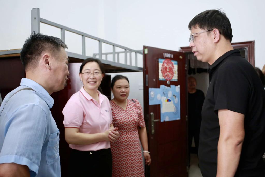 在9月11日的新生报到现场,学院院长段丁强、党委书记刘园美、党委副书记李静宇和23级辅导员汪伦在学院迎新点现场协调督导迎新工作。一行人前往23级新生寝室11B518进行走访慰问,实地查看了学生宿舍内基础生活设施的完整情况,亲切询问学生是否有其他需要帮助的地方,并叮嘱学生注意安全防护,寝室内互相帮助。金融12303夏静怡向老师们表达了感谢,表示会努力适应新环境,享受丰富多彩的大学生活。