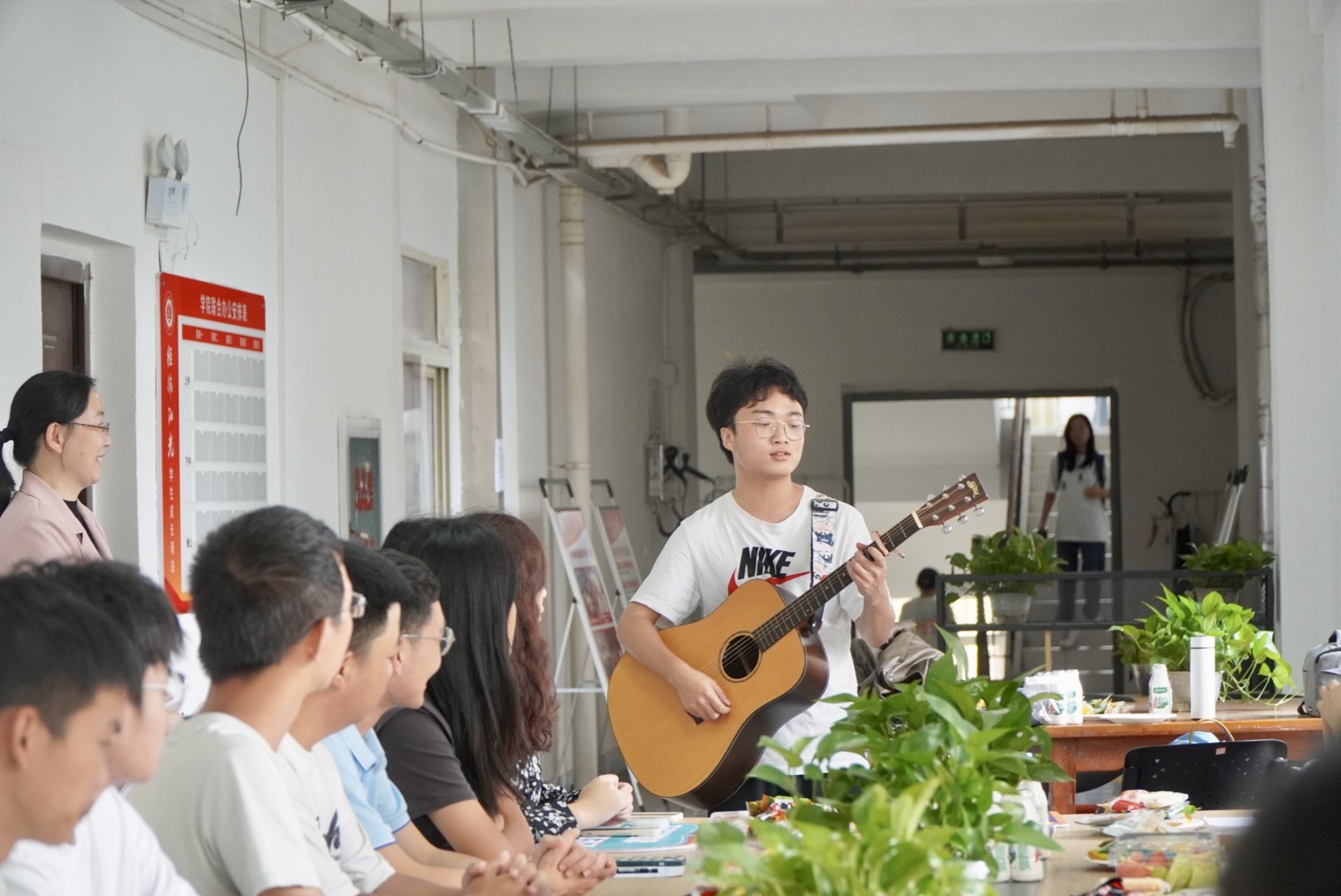 “池塘边的榕树上,知了在声声叫着夏天......”在吉他的和弦声里,在少年的歌声中,分享会正式开始。