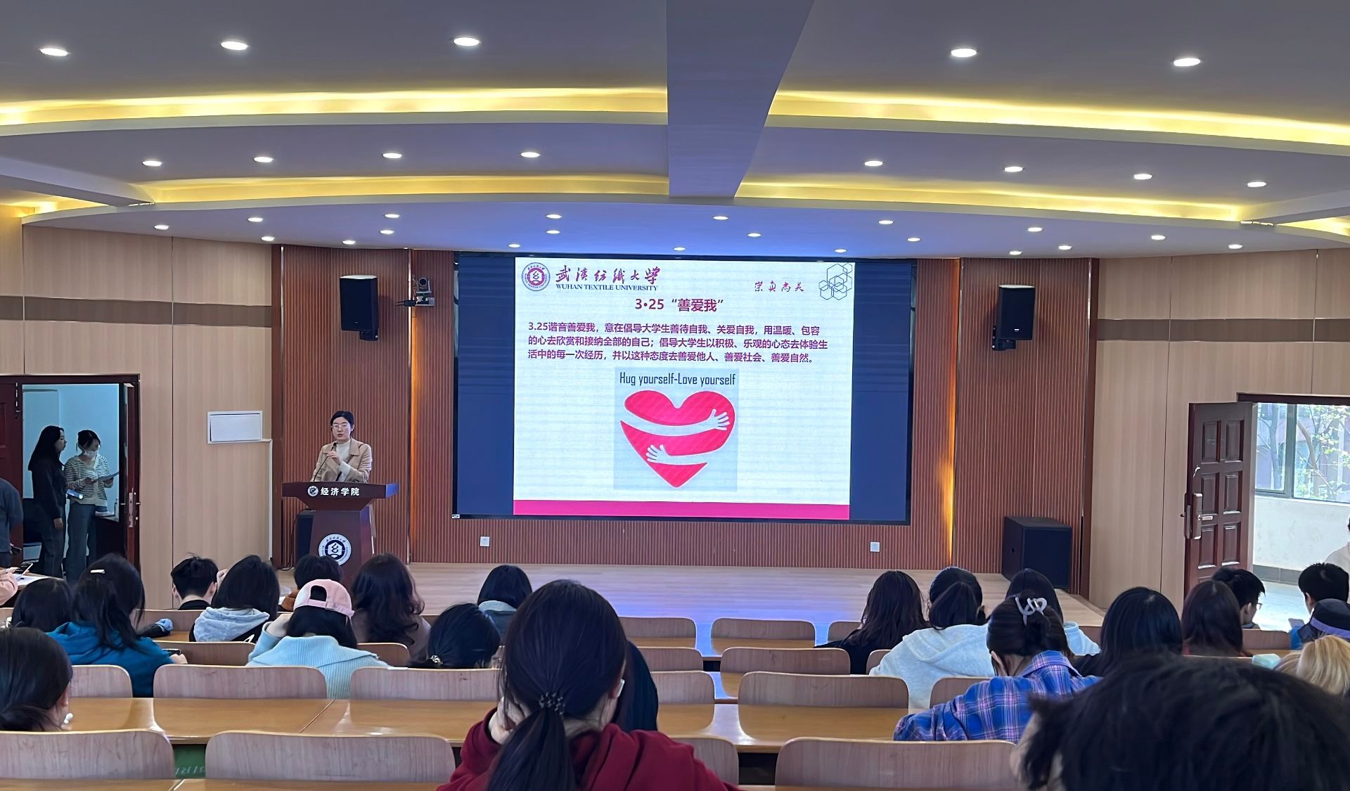 会上,师生们共同探讨如何善待自己、关爱自己,以温暖和包容的心态去欣赏和接纳自己的全部。3.25谐音“善爱我”,意在鼓励大学生们以积极、乐观的心态去体验生活中的每一次经历,并将这种态度延伸到善待他人、善待社会、善待自然的层面。师生们共同学习自我关怀的重要性,讨论如何在困难、挫折、痛苦、失望等不利情境中,对自己保持开放和友善的态度,学会安抚和关心自己。同时,老师们也提醒同学们,在需要时应及时寻求帮助,并公布了多种求助途径,让同学们感受到学院学校的温暖和支持。