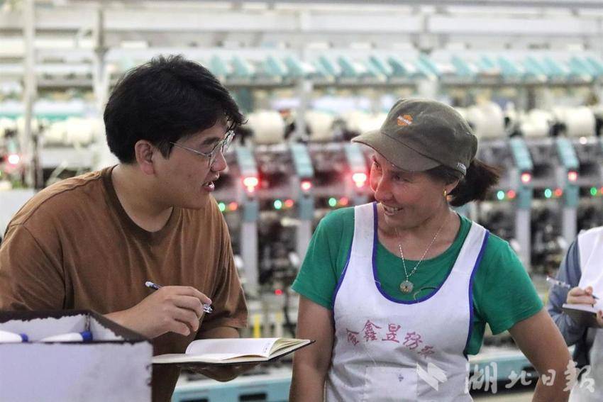 湖北对口支援新疆博尔塔拉蒙古自治州博乐市,与3800公里外这片丝绸之路重镇产生连接。“通过参加‘绘就纺织地图’社会实践,走访棉纺企业和棉花基地,了解企业生产经营和棉花种植及品质情况,真切感受到新疆是个蕴藏巨大发展潜力和充满机遇的地方,打算毕业后回到家乡、建设新疆。”来自新疆博乐的实践队员张家乐感慨道。