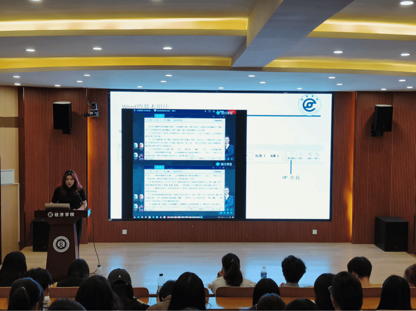 培训伊始,方一朵向大家强调了掌握办公技能的重要性。她指出,无论是学习中的论文撰写、报告制作,还是工作中的数据处理、项目撰写,都离不开办公软件的辅助,特别是在学科竞赛当中,熟练掌握办公技能可以大幅度提高效率。本次培训主要围绕Excel、Word、Powerpoint的使用展开,方一朵向大家展示了如何下载、基本操作流程以及快捷使用技巧,并详细介绍了文本设置、选择性粘贴、条件格式、幻灯片设计等操作,给大家带来了ROW函数等进阶使用技巧。培训过程中,方一朵还鼓励干事们善于运用网络资源,发挥主观能动性、进行线上学习,以不断提升自己的办公技能。她表示,办公软件的学习是一个持续的过程,希望大家能够保持学习的热情,不断探索与实践。
