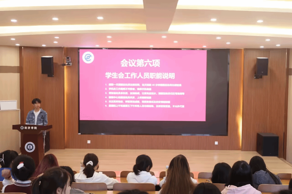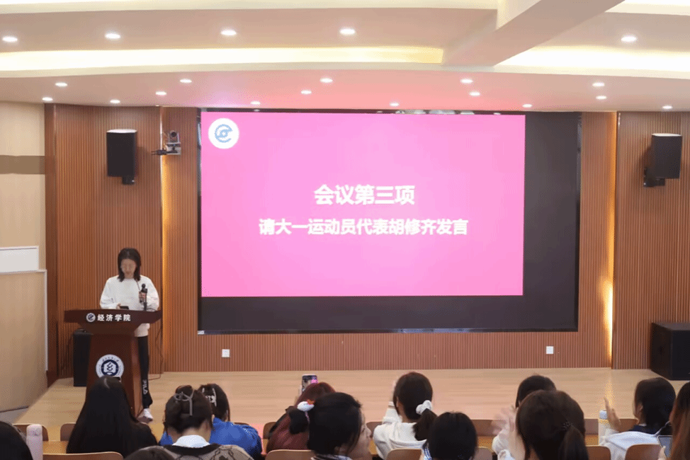 大会伊始,辅导员张玲老师深情地鼓舞着每一位运动员,她勉励大家以满腔的热情和昂扬的斗志投身于这场体育盛事。接着,文体艺术中心部长白锦扬致辞。他强调,文体艺术中心将始终遵循“服务学生,服务学院”的宗旨,致力于将运动会精心组织并顺利开展。同时,他表示,将竭尽全力为运动员们排除一切后顾之忧,确保他们能够全身心投入比赛,并衷心祝愿每一位参赛运动员勇攀高峰,为学院争光!接着,大一运动员代表胡修齐表达了对本次运动会的热切期待。从选拔的初步阶段到日复一日的刻苦训练,都是在为运动会做充分的准备。她呼吁运动健儿们应秉持着“更快、更高、更强”的体育精神,迎接自我,挑战自我,超越自我。同时,她代表全体运动员做出承诺:听从安排,遵守纪律,服从裁判,顽强拼搏,认真比赛。大会最后,徐正浩强调了运动会的相关注意事项,并宣布本次动员大会的圆满结束。