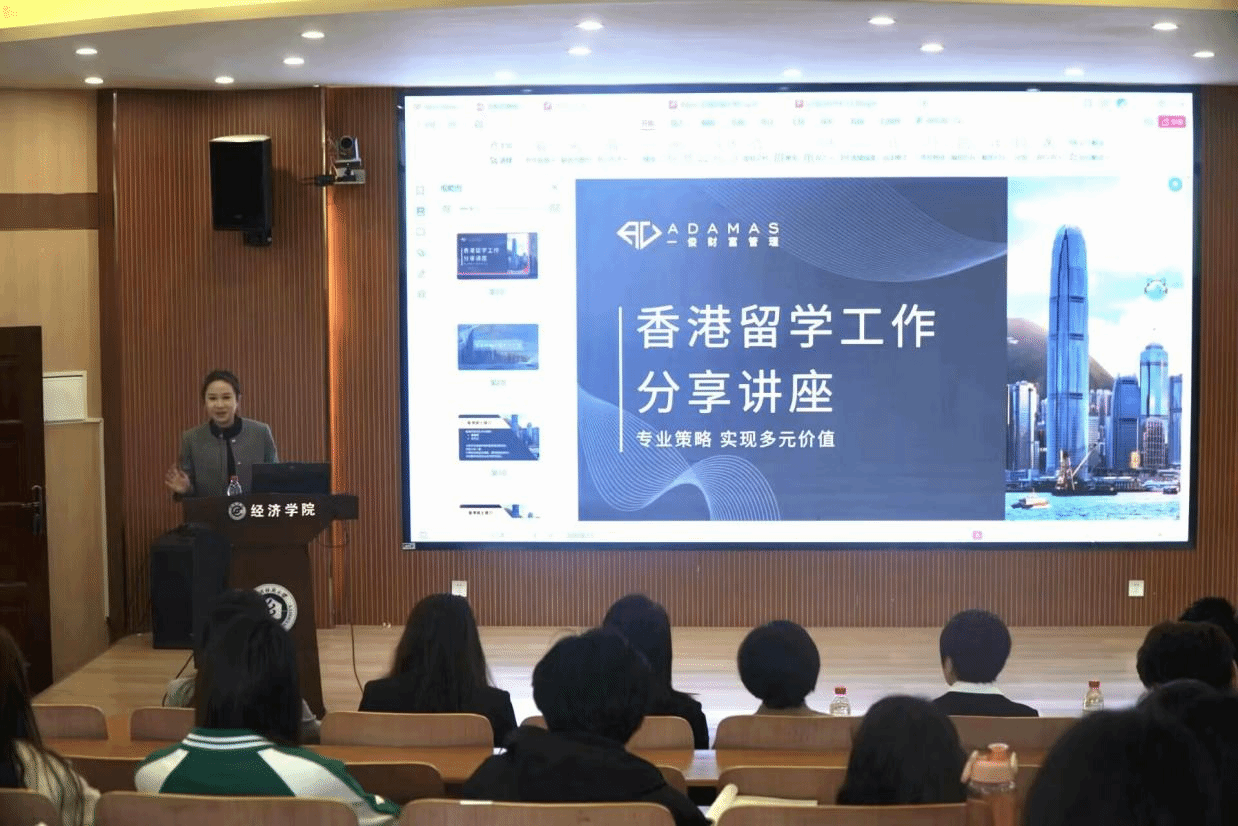 为帮助学院学子更多地了解香港留学优势,打破信息壁垒,4月11日,学院于崇德楼T301报告厅举办香港留学工作分享讲座。本次活动邀请Adamas财富管理公司总监王一俊,香港财富管理资深专家林咏诗、霍灵、陈羽等人进行讲解交流,及学院2023暑期香港研学团队成员王典、冯元宜作经验分享。