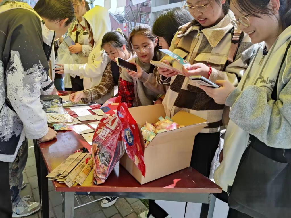 本次活动主要包含写“三行诗”,进行主题游戏等趣味形式,学生们兴趣盎然,积极响应,活动进程顺利有序。参与者在摆点处登记并投票给自己喜爱的“三行诗”作品,即可获得一次转盘的机会,转动转盘并正确回答问题后,即可获得抽奖机会,赢得惊喜奖品,现场氛围热烈非常。