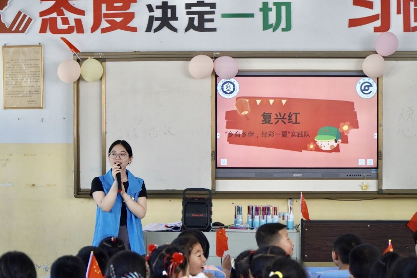 随着授课深入推进,课堂开展主题为“绘新貌,祖国变化知多少”的绘画活动,鼓励孩子们用彩笔画下自己心目中祖国最美的样子,一座座高楼大厦、一片片绿色山水、一个个飞机汽车……在支教队员的鼓励引导下,一幕幕壮丽的场景跃然纸上。简单的线条绘不完祖国的巨大变化,却能极大地鼓舞孩子们的民族自信心和民族自豪感。支教队员还把纸浆画带入课堂,让孩子们制作五星红旗、党旗。“我要好好读书!”“我要成为一名共产党员。”“我要走出大山,去看看外面的世界。”简单的话语,却带着孩子们最真诚最美好的期许。“90分钟虽然不长,但是希望能够在孩子们心中种下爱党爱国的种子。”支教队员彭建凯说道。
