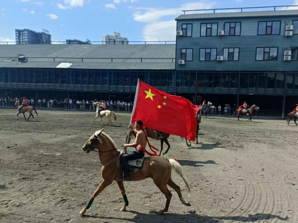 随后,团队前往野马集团产业开发区,参观野马集团育种汗血宝马设备药品,调研马文化旅游带动发展状况。团队成员了解到,产业集群已改良繁育马匹15 万匹以上,覆盖农牧户2万户,带动农牧民增收 3 亿元以上。同时,开发马骑乘旅游线路50余条,累计举办200余场马术赛事,接待骑马爱好者 20000余人次,带动农牧民就业3000户以上。野马公司技术专家曹克涛介绍集团未来规划,“集团持续举办‘伊犁天马节’等马文化旅游节庆活动,推动新疆马种资源区外转化。”