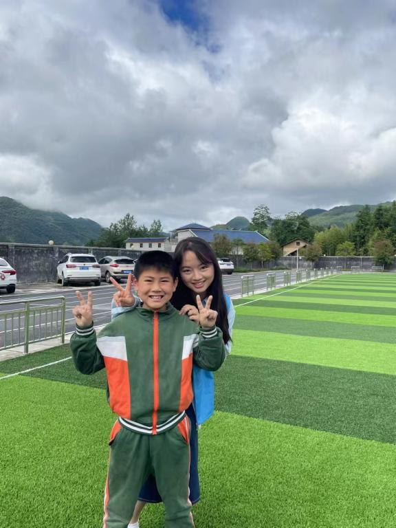 大山带来赏心悦目风景的同时,也带来了一些小小的“麻烦”。尽管已经做好了吃苦的准备,可当我们入住学校寝室时,还是颇感不适:又大又黑的蟑螂根本不怕人,在下雨后布满每一面墙的密密麻麻的蚊虫,在闷热寝室内半夜被热醒的窒息感……好在,这一切的一切都在看到孩子们笑脸的那一瞬间被抚平。“我是小琳姐姐,今天由我来给大家上第一节课——心理健康教育。”面对着两百多张真诚而稚嫩的小脸,我不自觉的把声音放柔放缓,仿佛如此便可以守护好他们的童真世界。我引导他们在A4纸上写上自己的心愿与烦恼,暗自期待着他们在最后一天将手中纸折成纸飞机放飞的模样。到那时蓝天白云,青山环绕,纸飞机自在翱翔,孩童们奔跑嬉闹,该是多么美好。