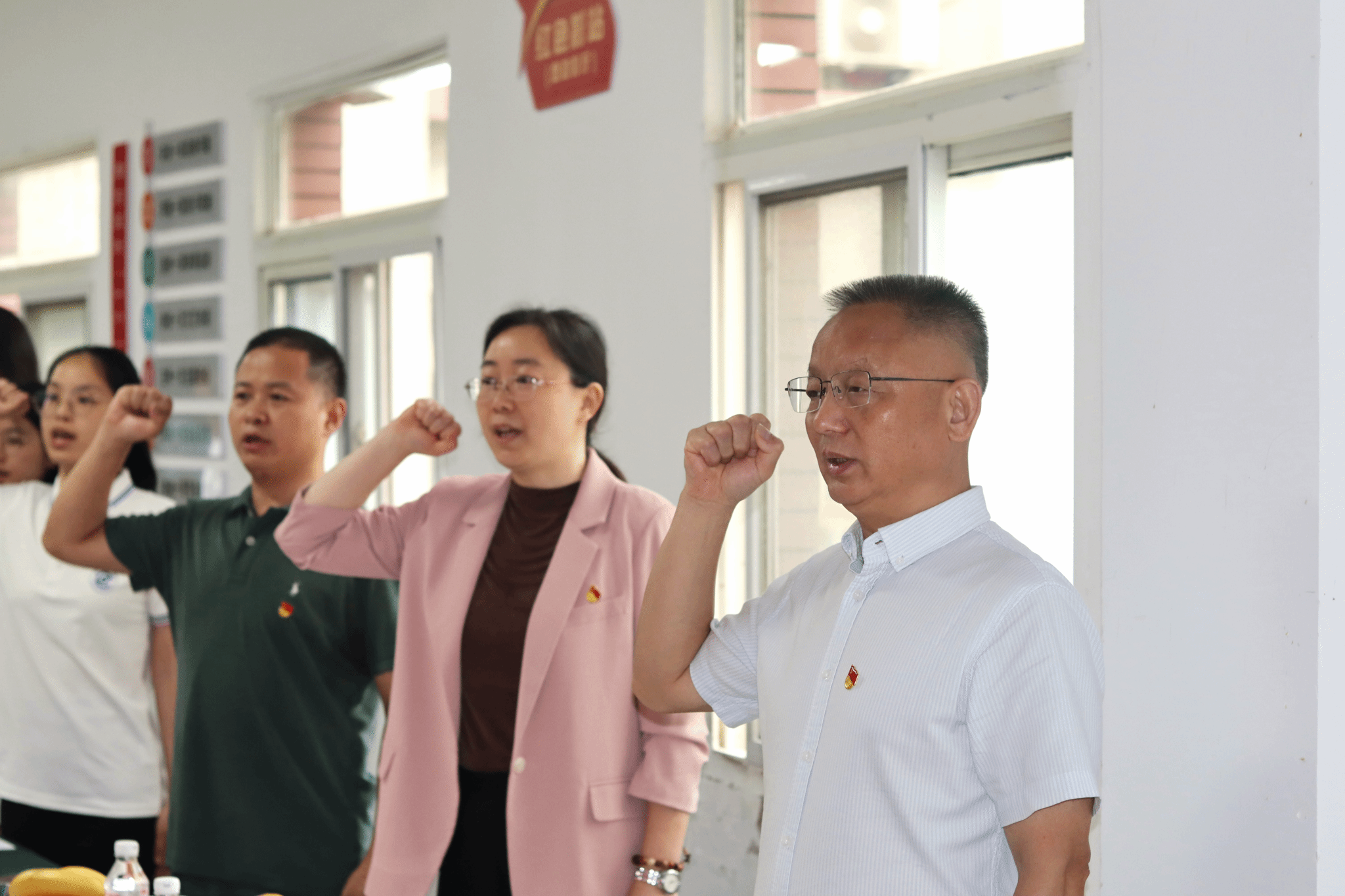 活动在共唱国歌中徐徐拉开序幕。在学工部部长张莎莎的带领下,与会人员重温入党誓词,铿锵有力的誓言回荡在会场,彰显着共产党员忠诚干净担当的政治本色。