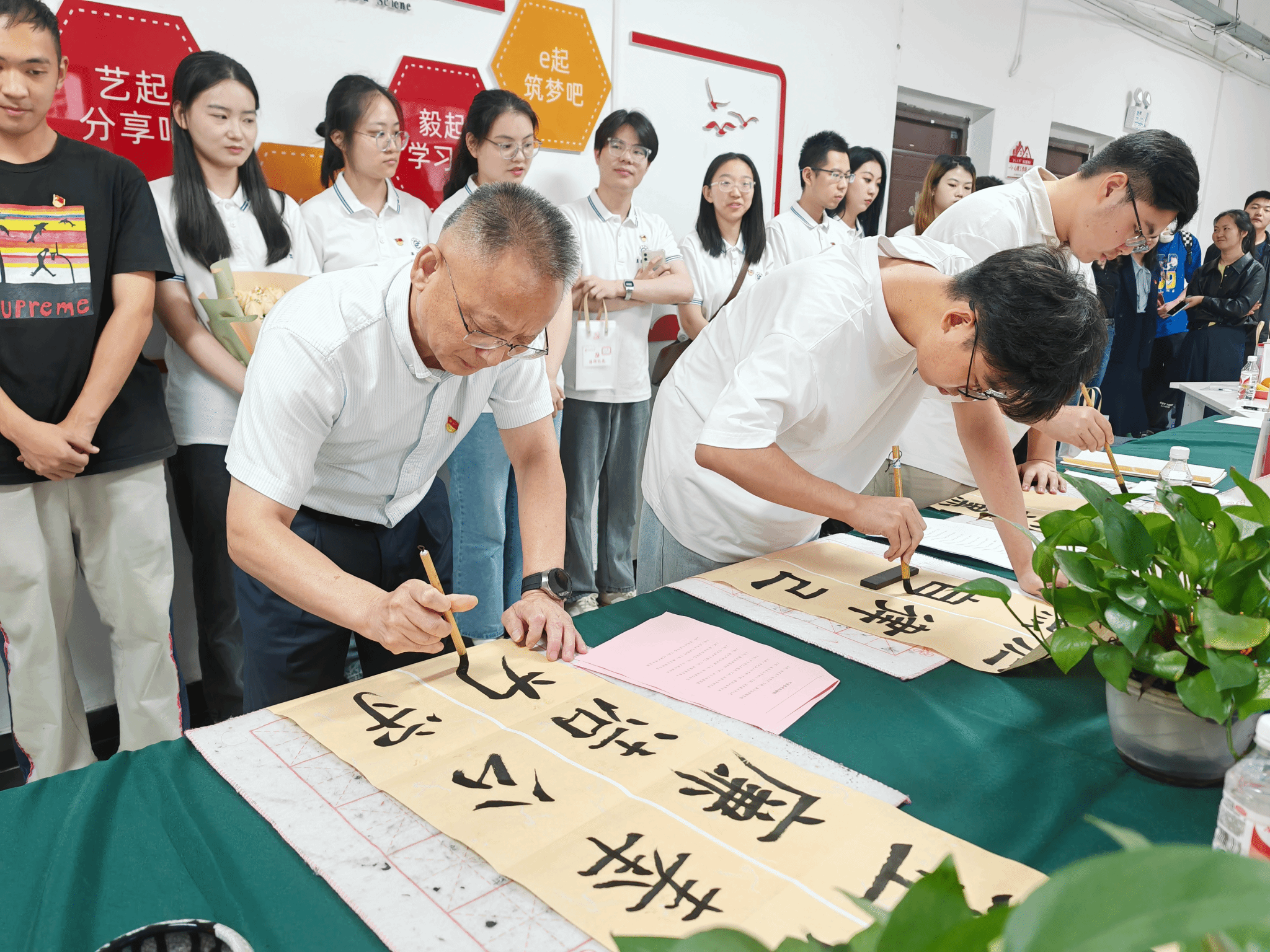 罗锦银为毕业生党员过“政治生日”,赠送包含党徽、温馨提示、政治生日卡以及《中国共产党纪律处分条例》在内的“信仰礼包”,共同切下生日蛋糕。他还与大家一起观看党风廉政警示教育片《持续发力,纵深推进》,书写清廉楹联,传递清廉文化。