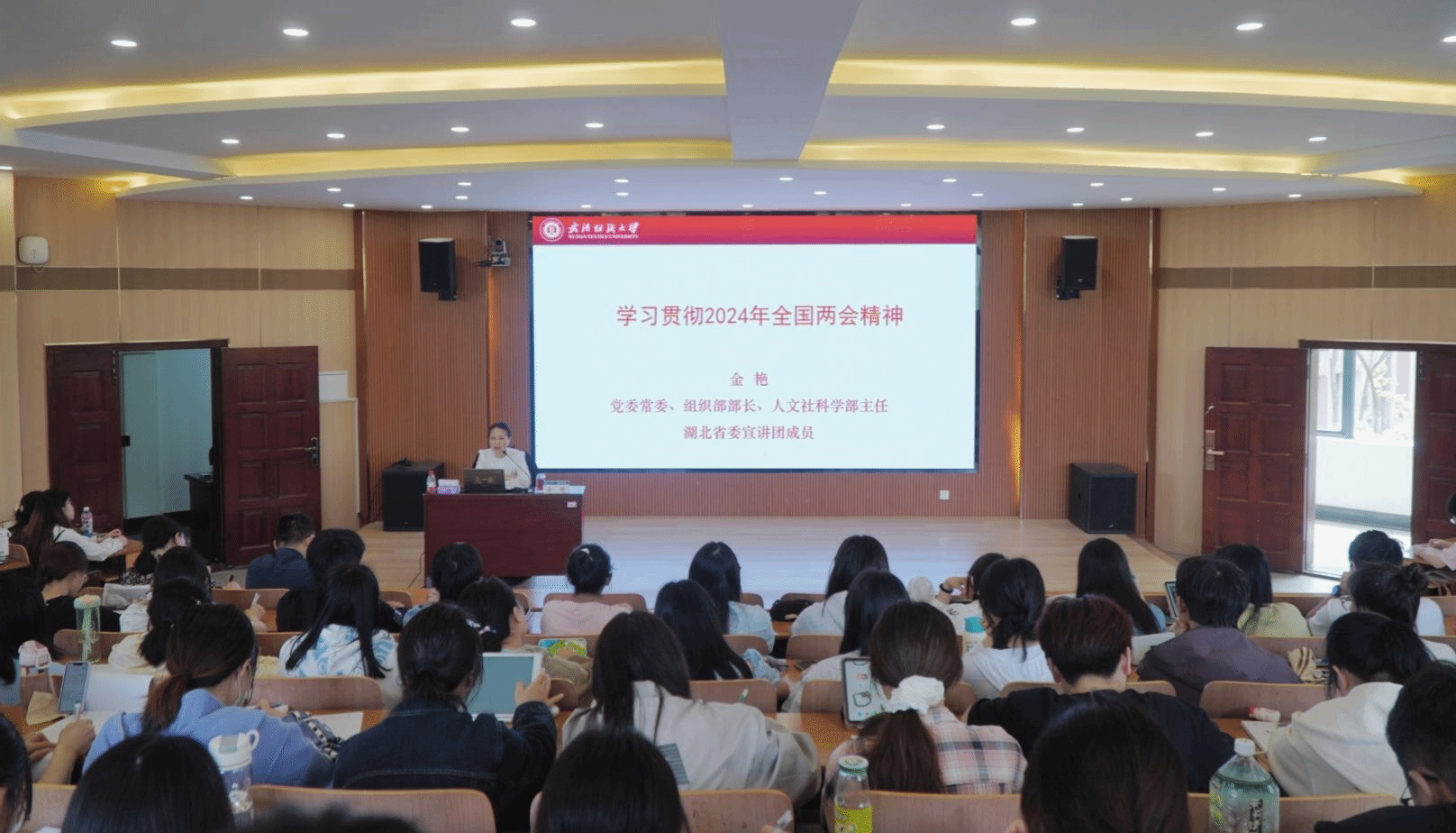 为深入学习两会精神,贯彻新发展理念,4月18日,校党委常委、组织部部长金艳教授在崇德楼T-301报告厅讲授专题党课。williamhill英国、会计学院党政班子成员以及全体入党积极分子参加本次党课学习。